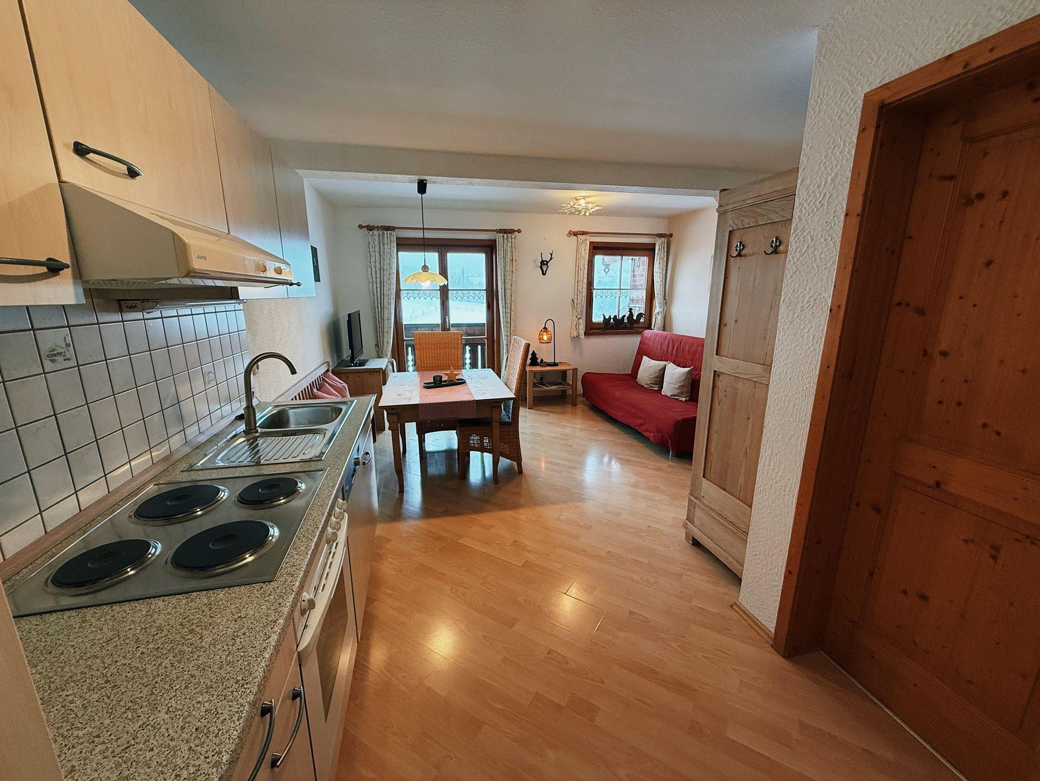 Balkon nach Süden mit herrlichem Bergblick. 1 separates Schlafzimmer mit Doppelbett, Küche im Wohnraum mit Elektroherd und Backofen, Wasserkocher, Kaffeemaschine und Essecke. Wohnraum mit gemütlicher Couch, Sat-TV, Radio-CD.
