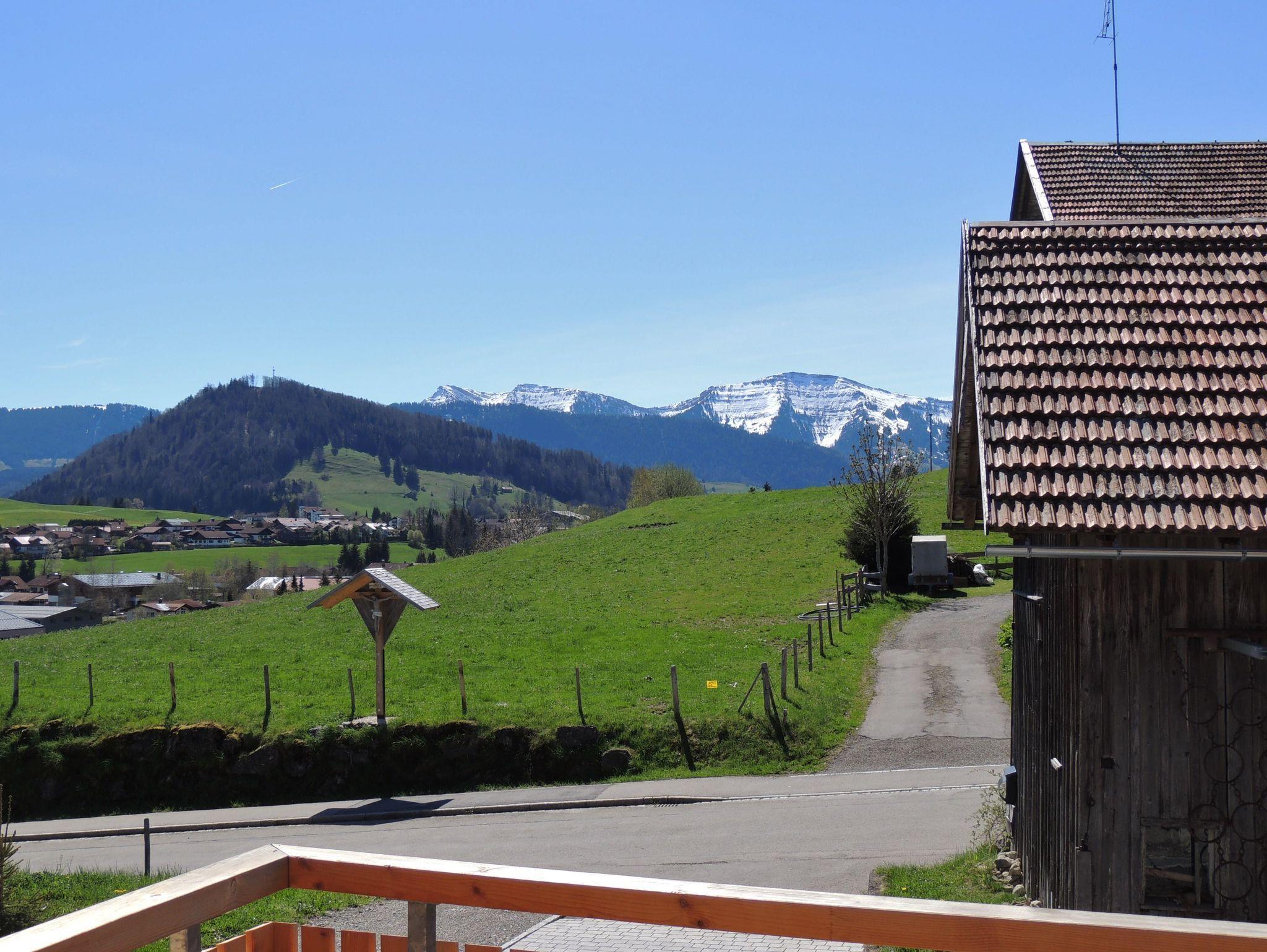 Vom nach Süden ausgerichteten Balkon haben Sie einen wunderbaren Blick auf „Staufen, Rindalphorn und Hochgrat“.