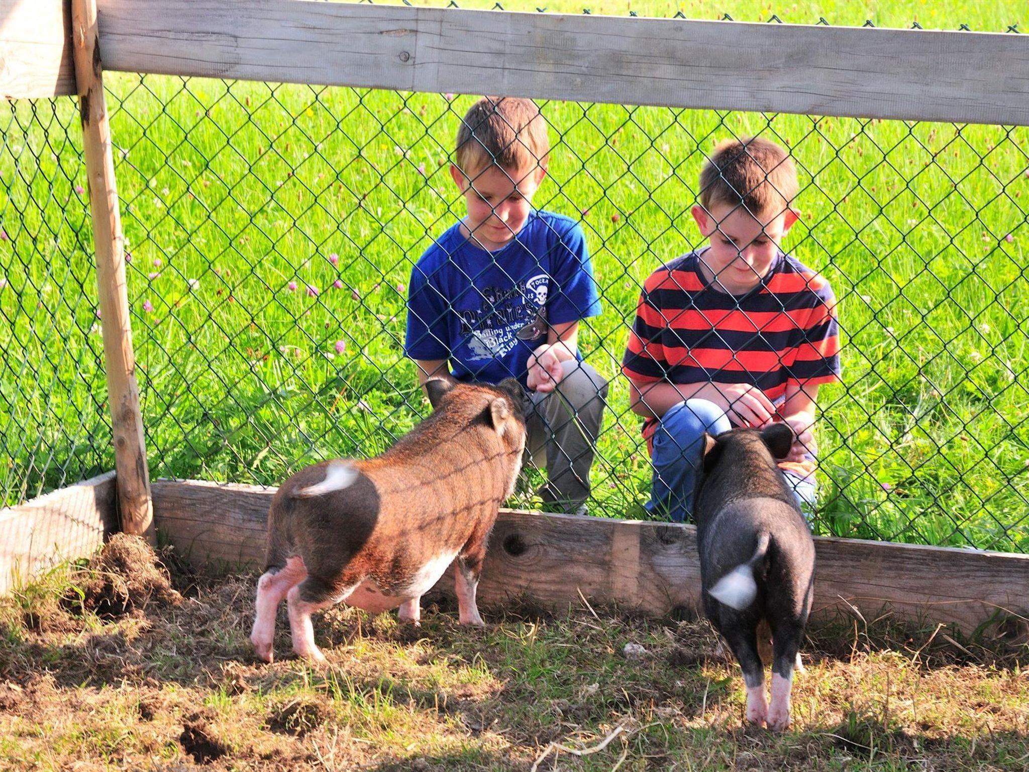 Unsere kleinen Gäste erwartet ein Spielplatz, Kühe und verschiedene Kleintiere.