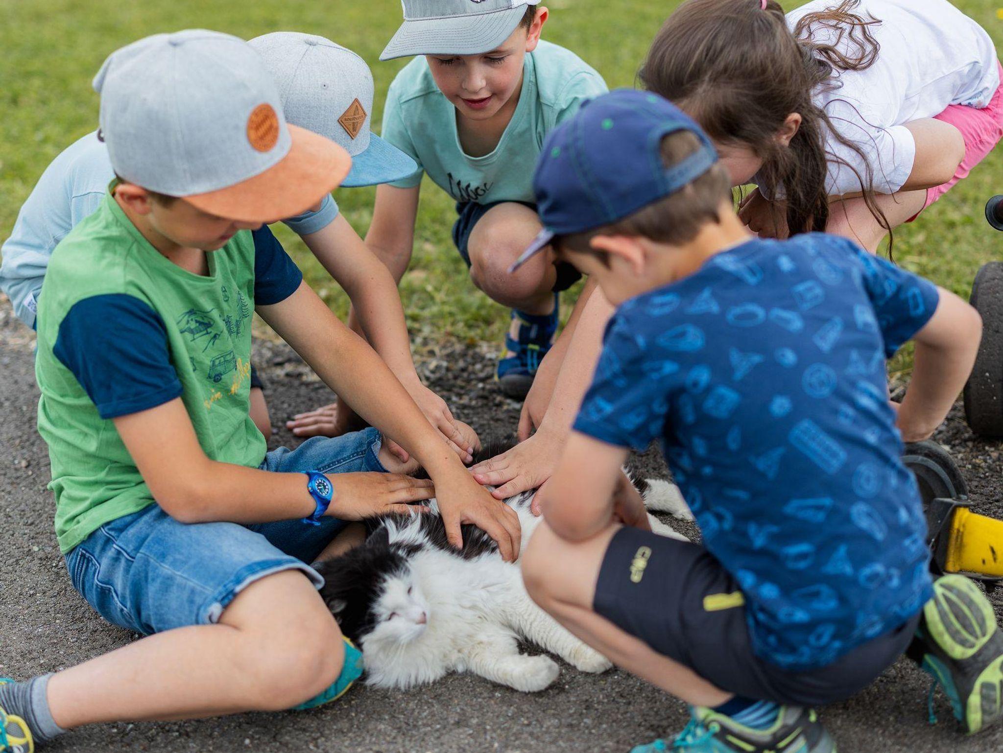 * aktiv-bewirtschafteter Biohof mit Rindern, Kälbern, Hühnern, Katzen, Hasen, Zíege und Pony