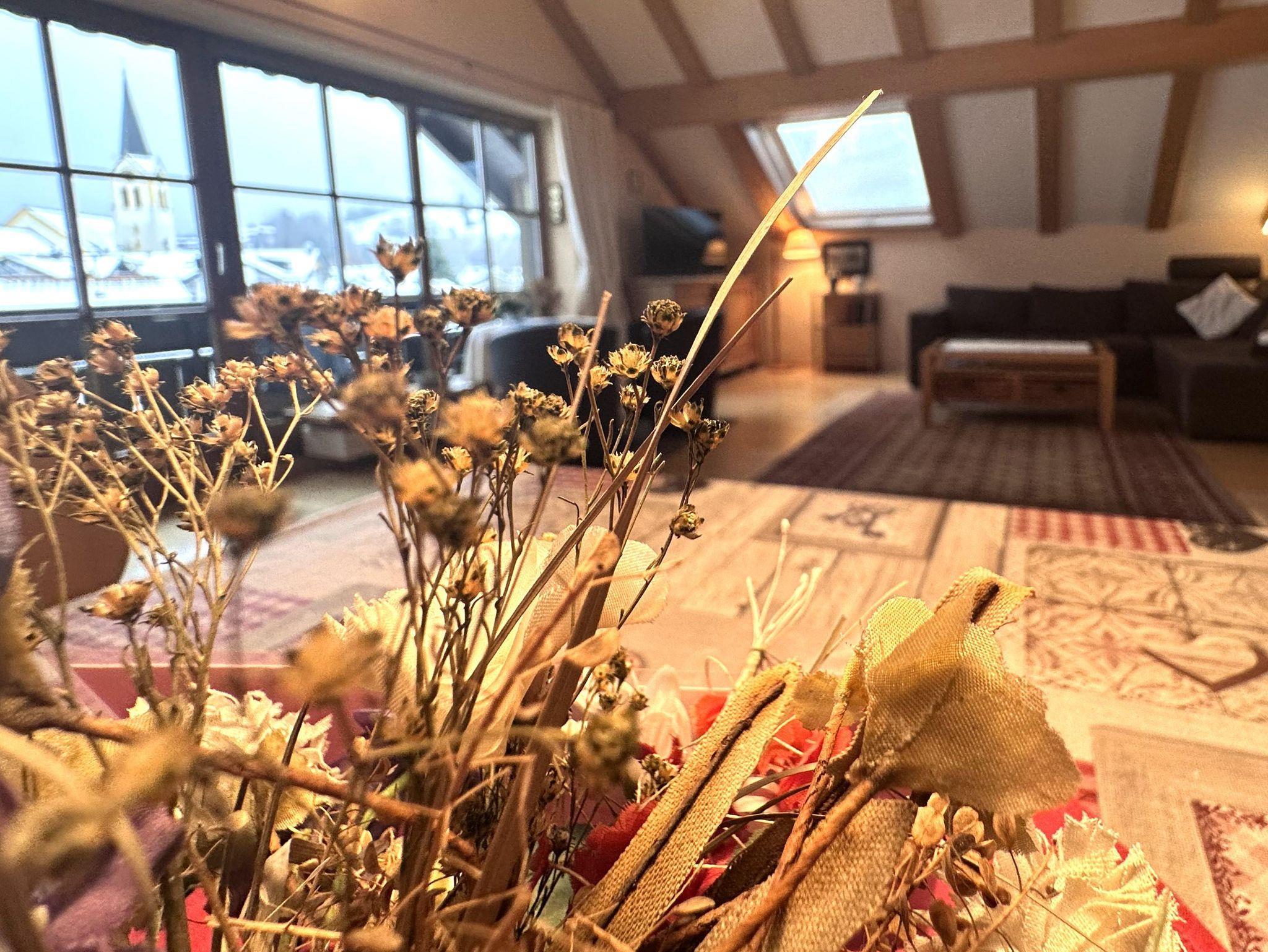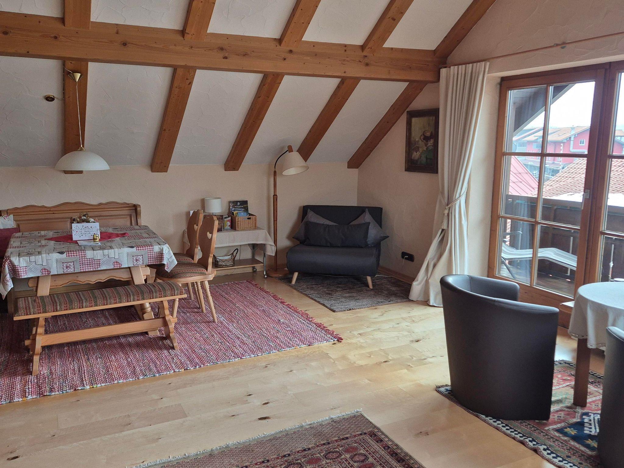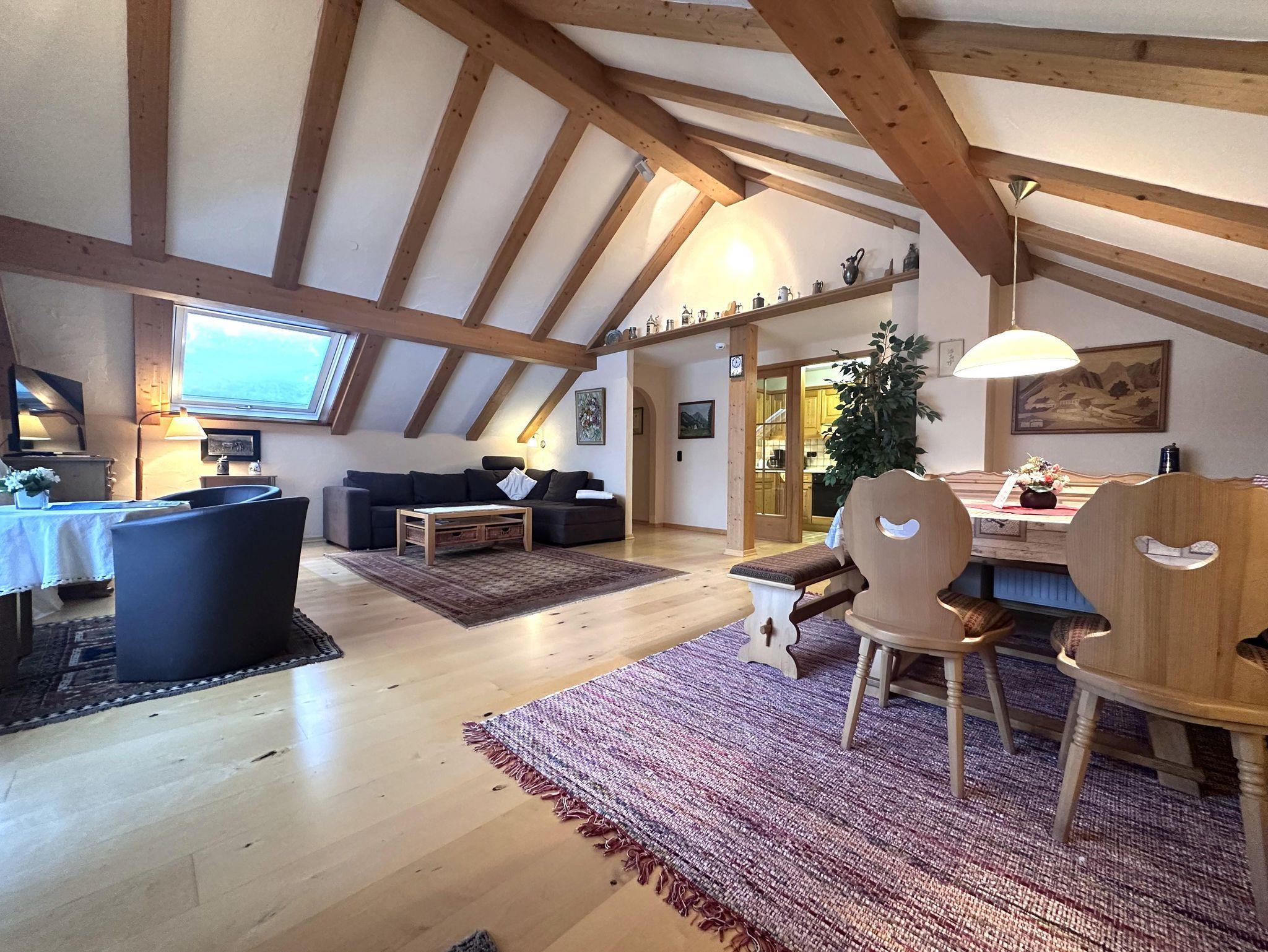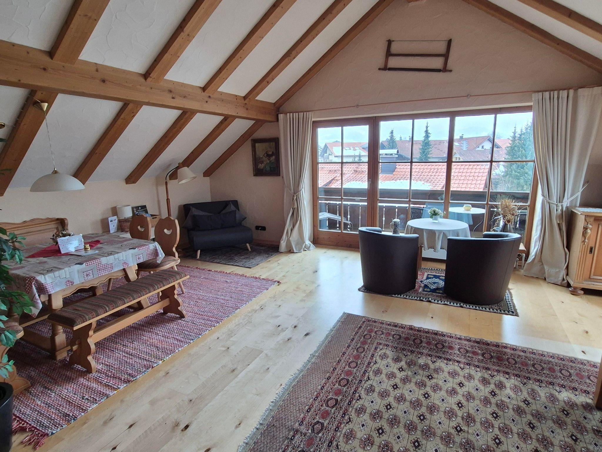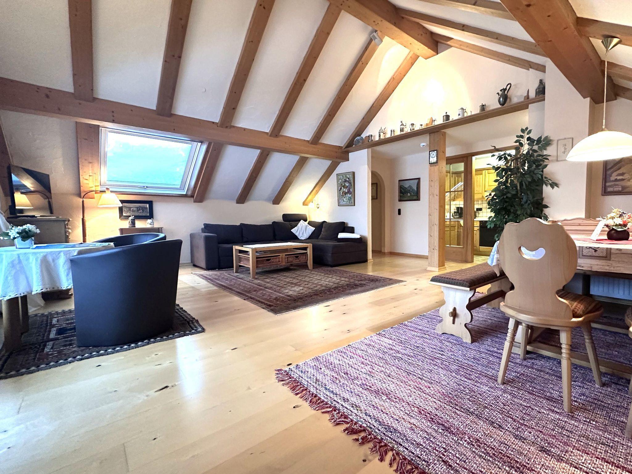 In unmittelbarer Nähe zum alten Ortskern von Oberstaufen liegt unsere komfortable, sonnige, 103 m2 grosse Wohnung im Dachgeschoss eines ruhig gelegenen Mehrfamilienhauses.