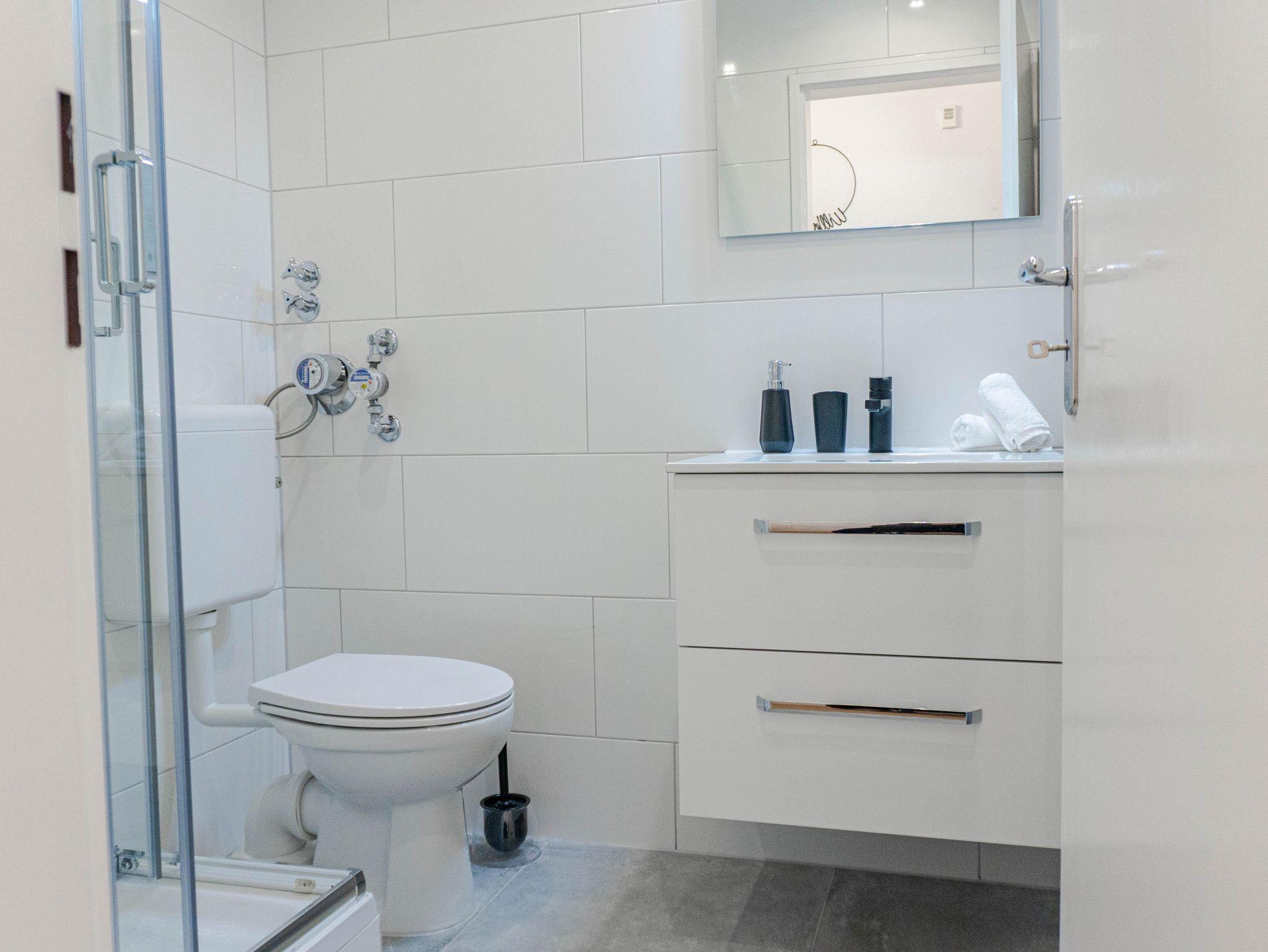 Sie parken direkt vor dem Eingang und gelangen über die Treppe zur Erdgeschoß Wohnung. Wie bieten flexiblen Selbst-Chek-In mittels Schlüsselbox.