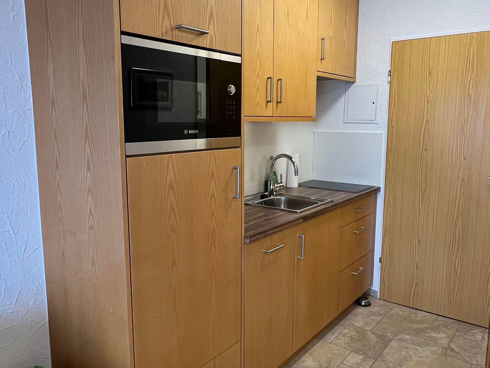 Die Küche ist mit moderner Technik, Induktionskochfeld mit Dunstabzug, Mikrowelle, Spülmaschine, großem Kühlschrank, Kaffeemaschine usw. ausgestattet.