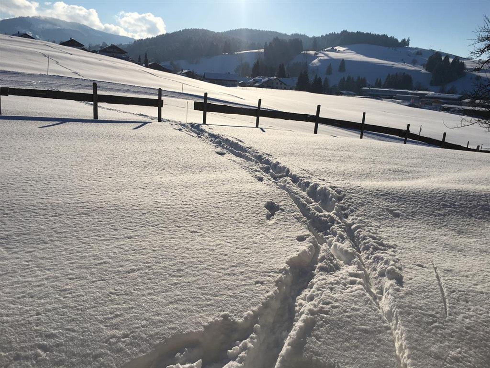 Im Winter können Sie direkt in die Langlaufloipe einsteigen.