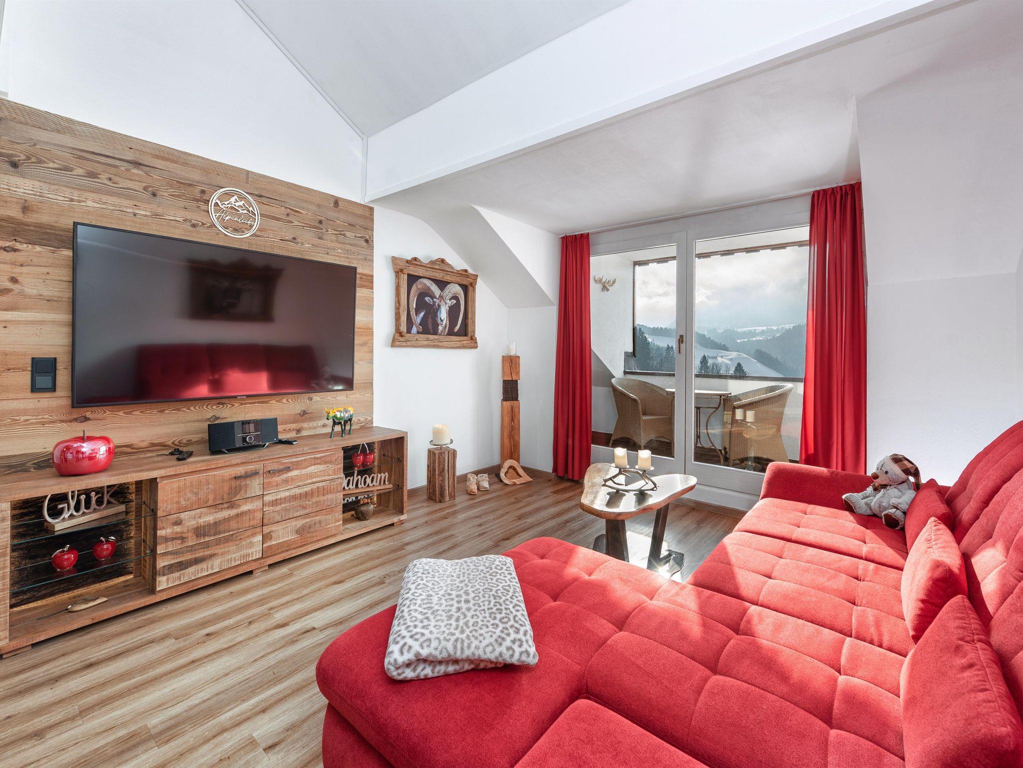 Das Apartment Alpenliebe überzeugt unter anderem mit ihrem sensationellen Ausblick vom Balkon und jedem Fenster auf den Hochgrat und die Allgäuer Alpen.