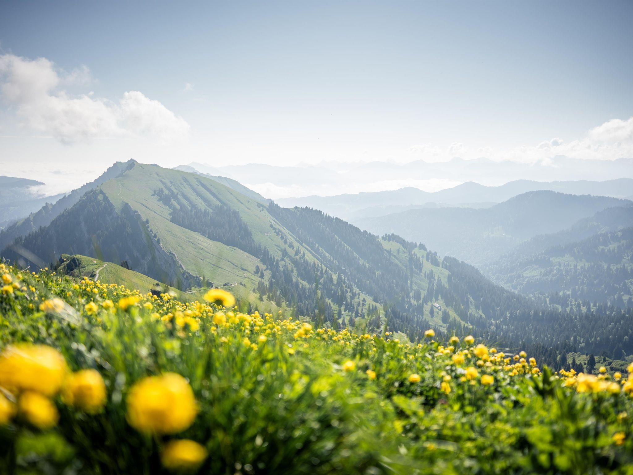 Vom nach Süden ausgerichteten Balkon haben Sie einen wunderbaren Blick auf „Staufen, Rindalphorn und Hochgrat“.