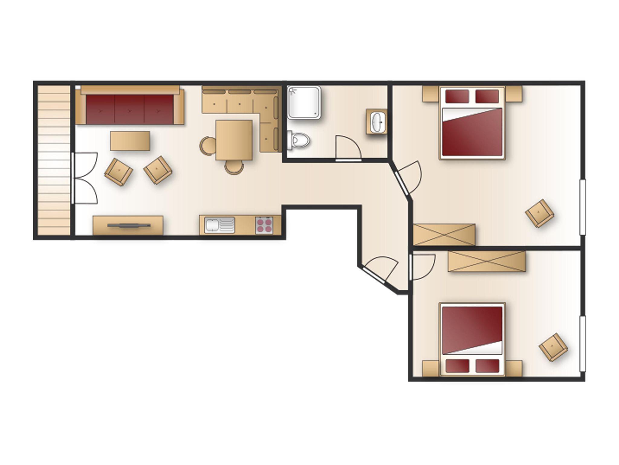Geräumige Ferienwohnung für 2-4 Personen im 2.Stock mit Südbalkon. Die Wohnung hat zwei separate Schlafzimmer jeweils mit Doppelbett. NEU: Ab jetzt mit Flachbildschirmfernseher.