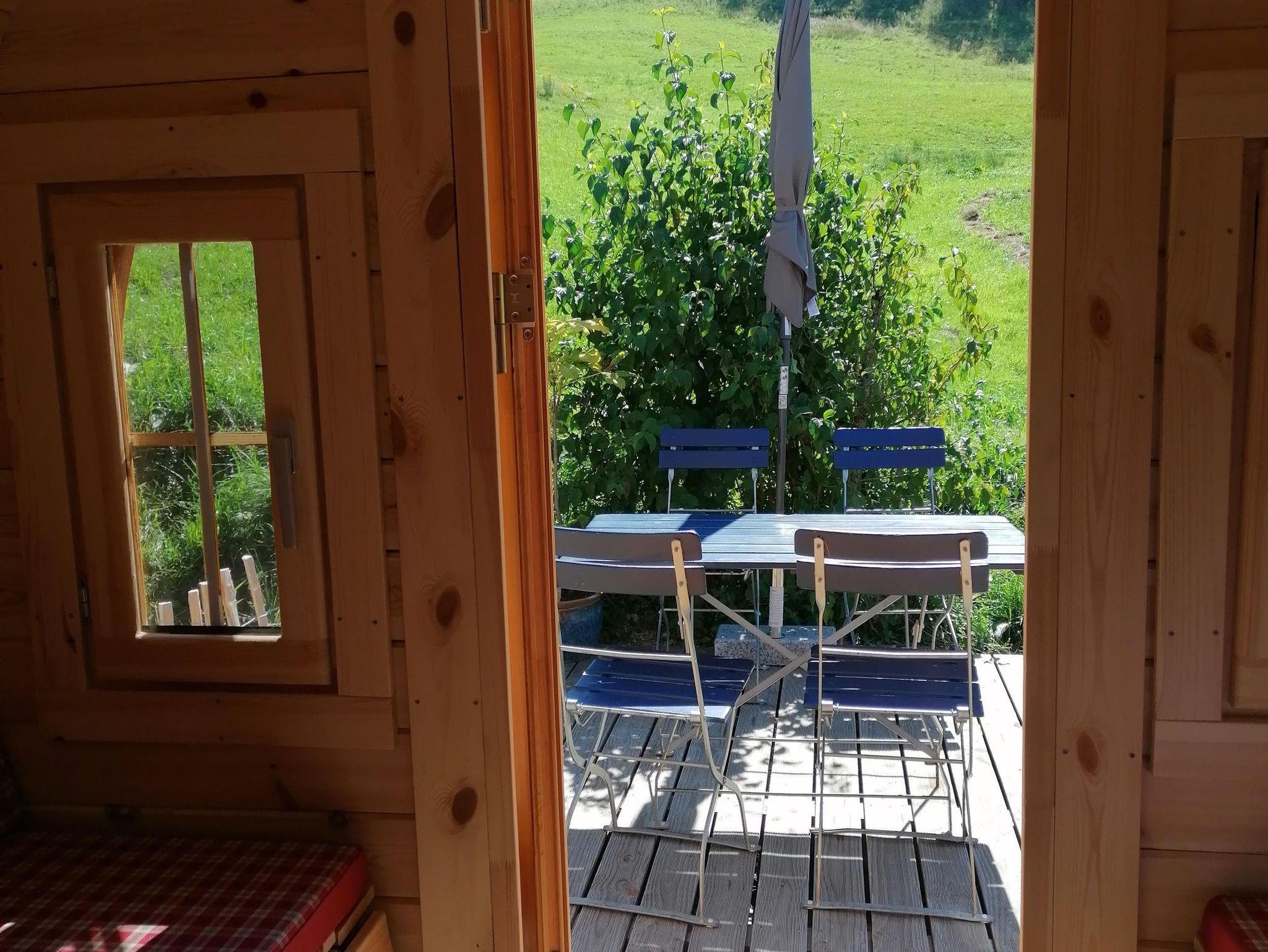 Das rustikale Schlaffass „Wolpertinger“ befindet sich bei Oberstaufen, nahe der österreichischen Grenze auf dem Camping-Aach, und bietet einen fabelhaften Blick auf die Berge. Das Fass verfügt über einen ausziehbaren Tisch mit 6 Sitzplätzen, ein 200x200cm großes Familienbett, sowie zwei Wandelbetten mit einer Größe 210x70 cm.