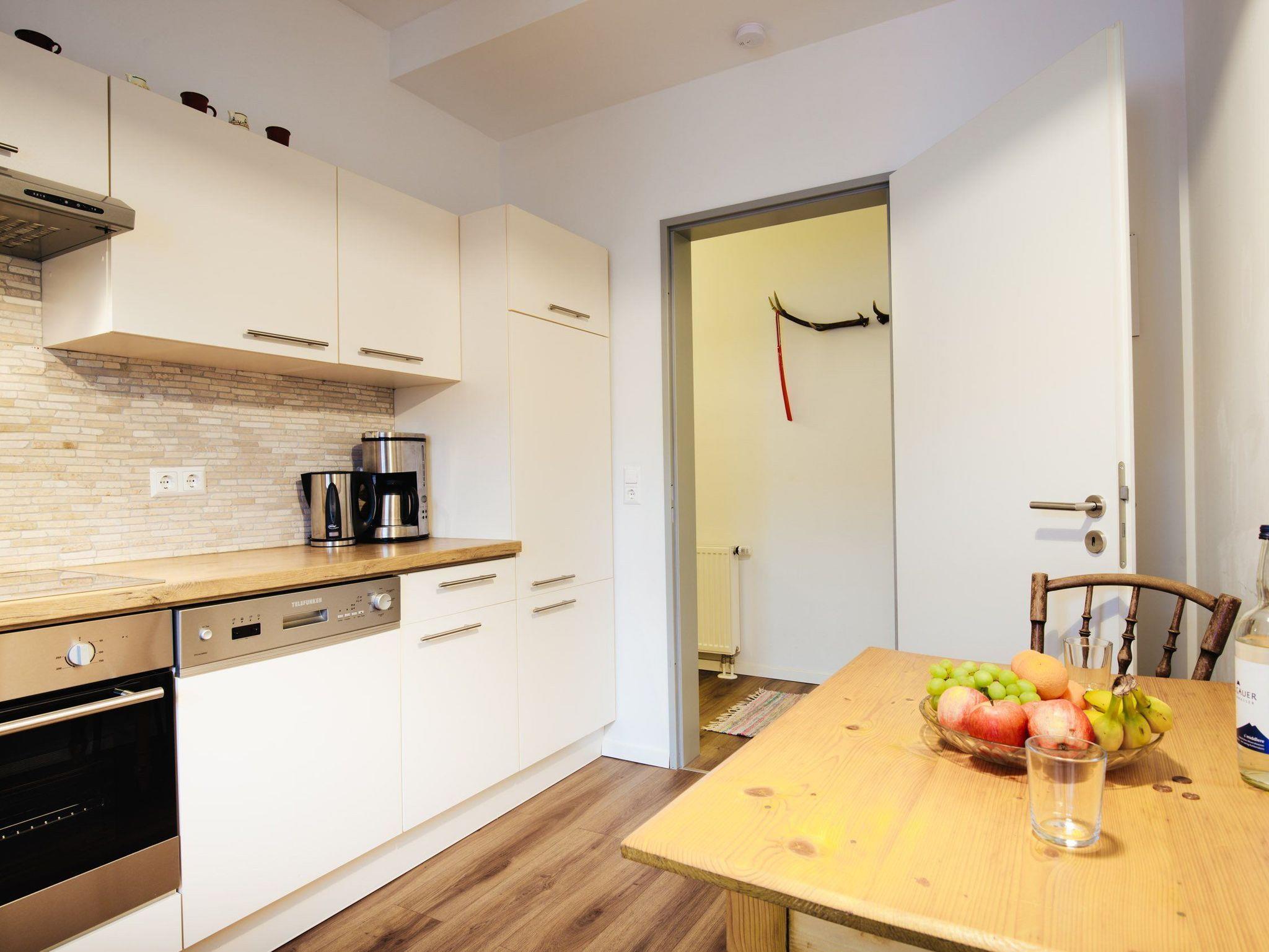 3 Zimmer, Küche. Bad Ferienwohnung mit 73 m² für 1 bis 4 Personen, 2 Schlafzimmer, großes Wohnzimmer, separate Küche, 2. Obergeschoß/Dachgeschoß, Westbalkon, Kinderzustellbett und Kinderhochstuhl auf Anfrage möglich