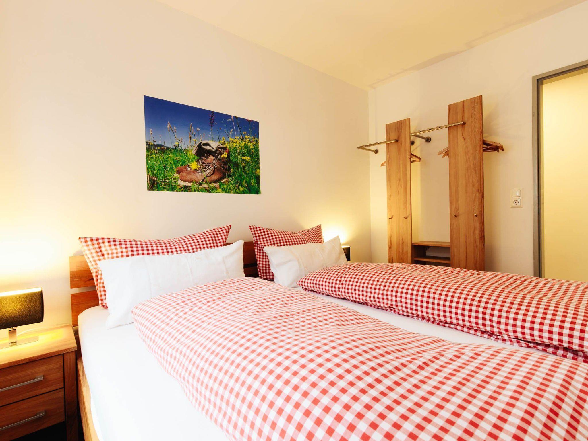 3 Zimmer, Küche, Bad Ferienwohnung mit 62 m² für 1 bis 4 Personen, großes Wohnzimmer, zwei Schlafzimmer mit Doppelbetten, separate Küche, 1. Obergeschoß, Westbalkon, Kinderzustellbett und Hochstuhl auf anfrage möglich