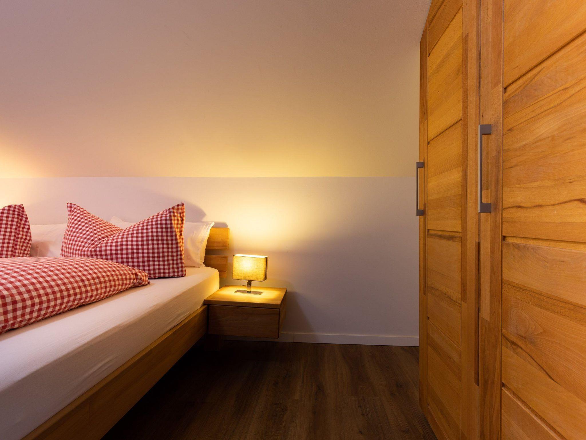 3 Zimmer Ferienwohnung mit 64 m² für 1 bis 4 Personen, 3 Räume mit 2 Schlafzimmern, Wohnzimmer, Küchenzeile in der geräumigen Diele, 2. Obergeschoß/Dachgeschoß, Südbalkon, Bergblick, Kinderzustellbett/-hochstuhl auf Anfrage möglich