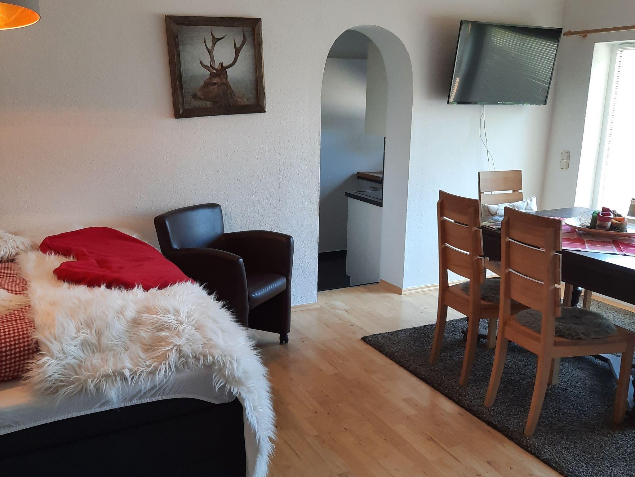 Sehr gemütliche Wohnung mit sichtbarem Dachstuhl, neuer Küche, DU&WC, Boxspringbett, großes Allgäuer Chaiselonge , sehr schöne, große Essgruppe, vorgelagerter Balkon