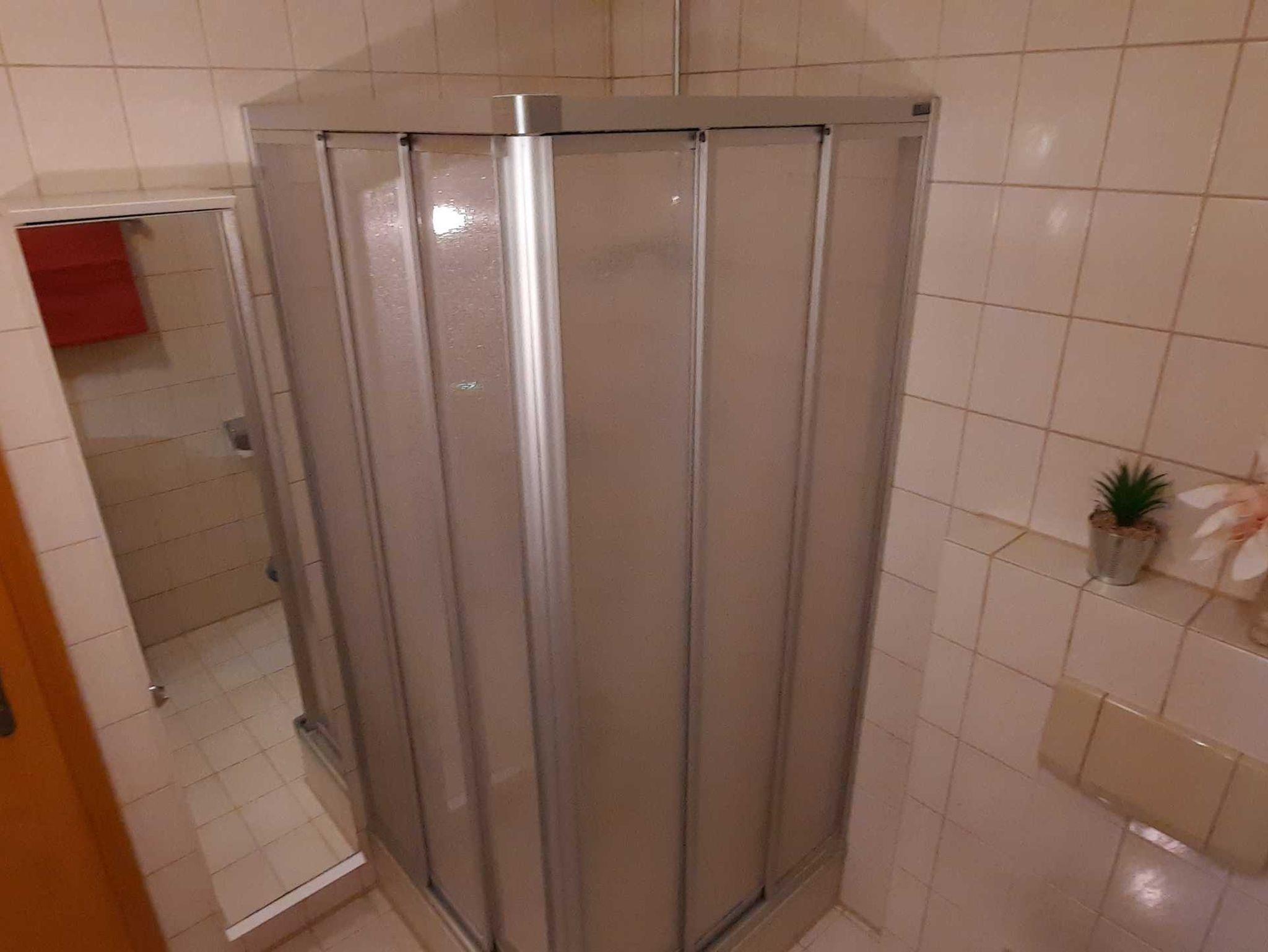Das großzügige Badezimmer verfügt über eine Dusche sowie ein WC.