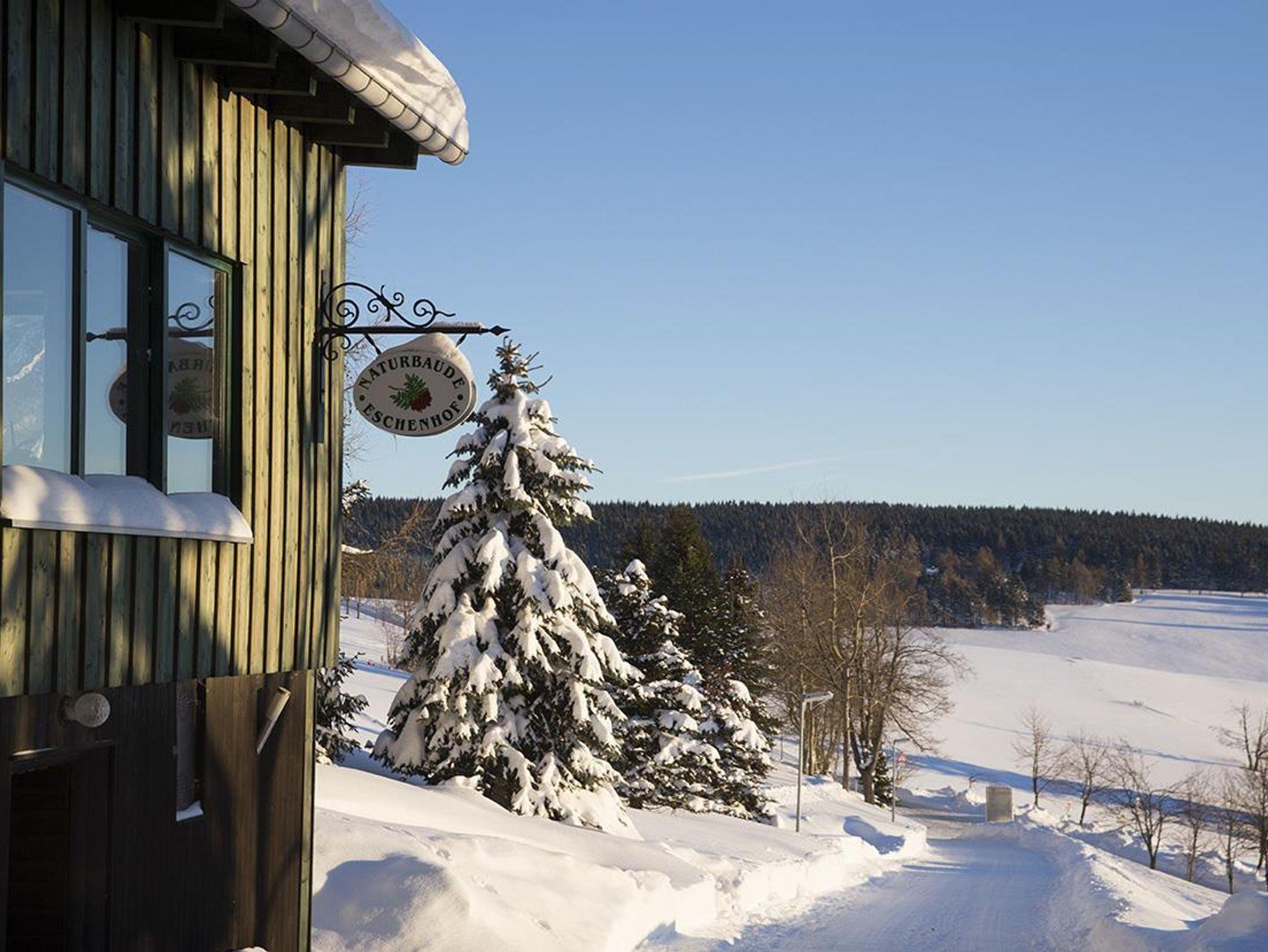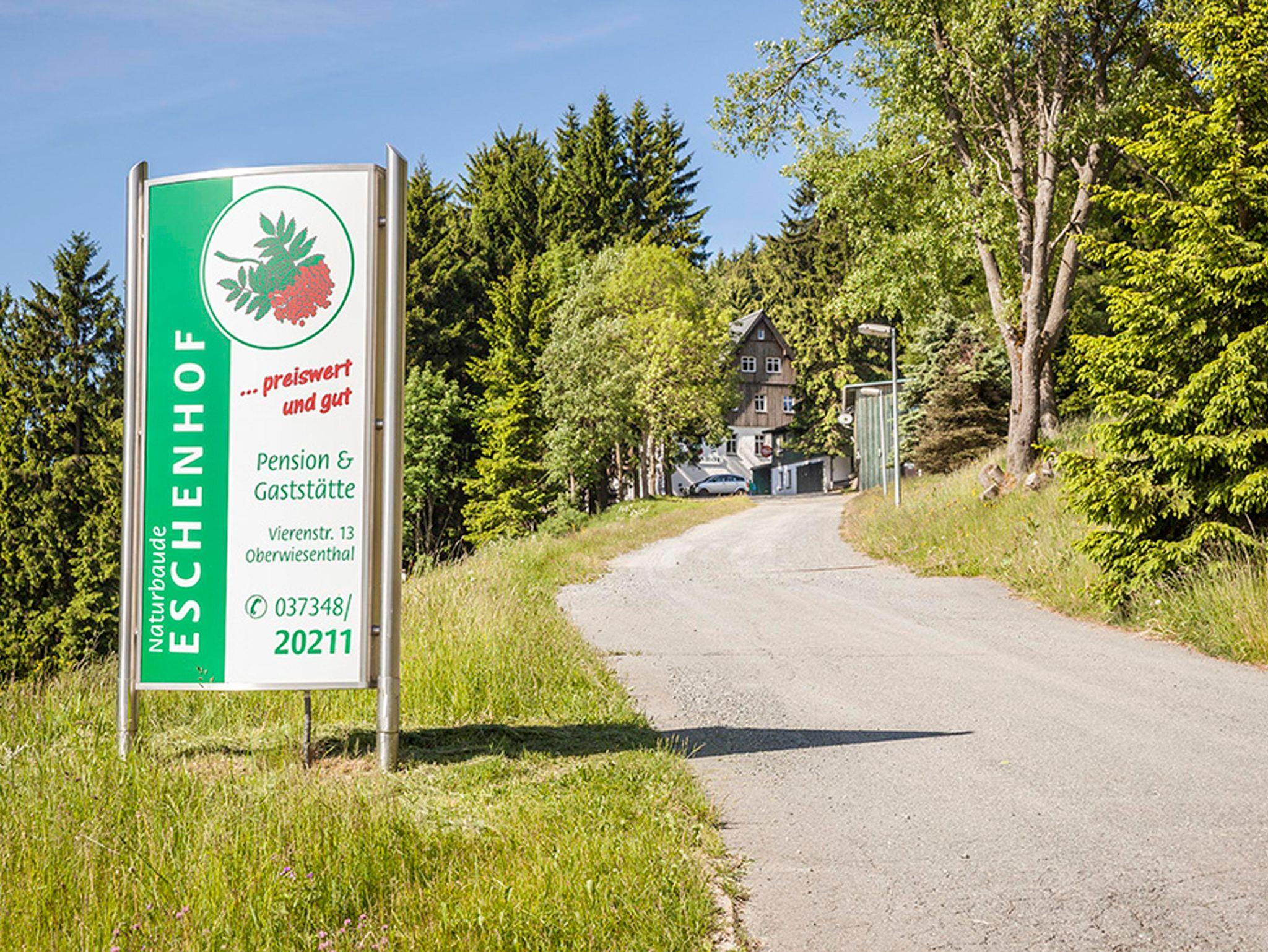 Herzlich willkommen in der Pension/Gaststätte Naturbaude Eschenhof in Oberwiesenthal auf 1000 m NN- in ruhiger Stadtrand- und Waldrandlage mit direktem Einstieg in das Wander- und Skigebiet des Fichtelberges.