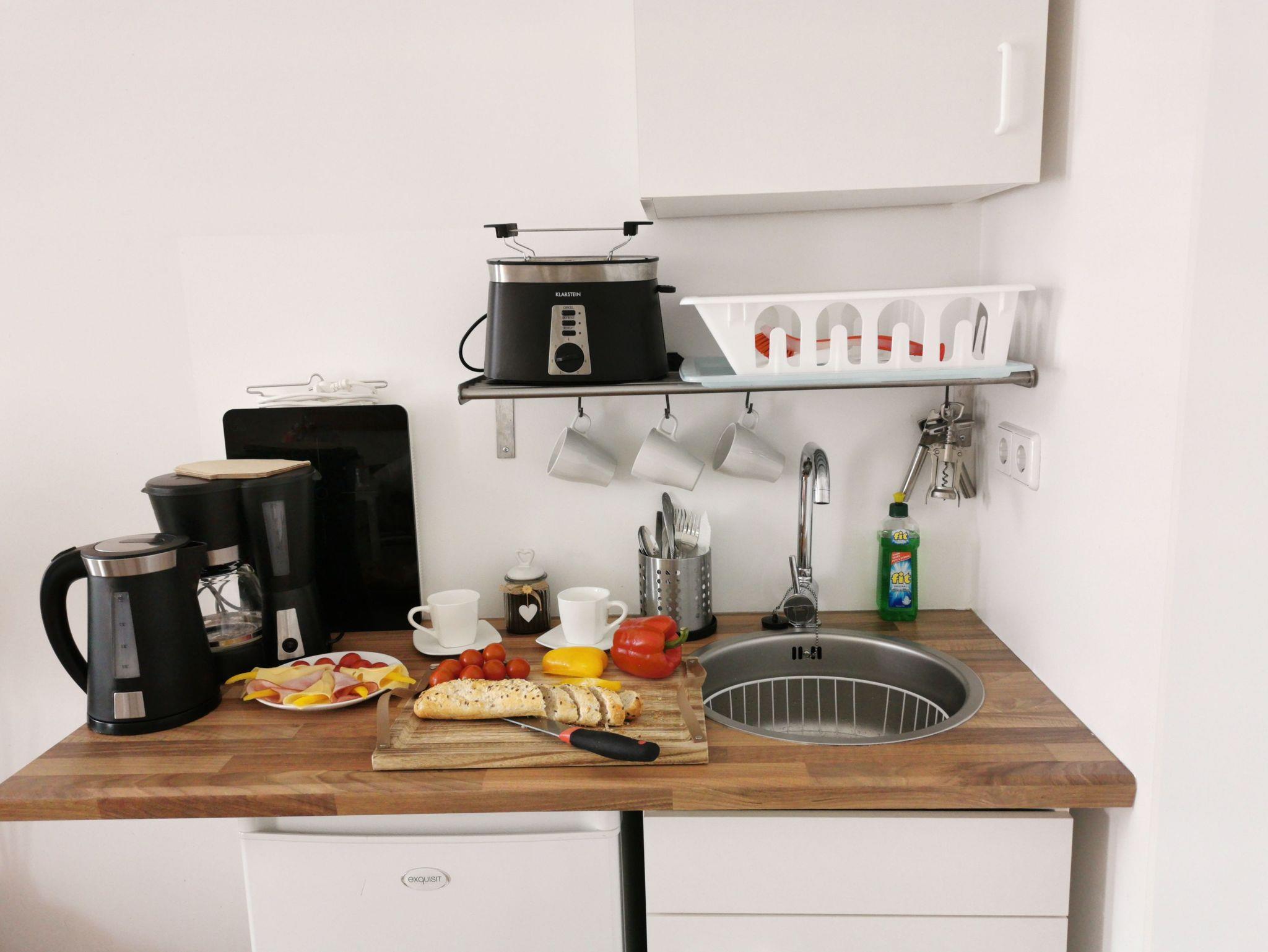 Die Apartments verfügen über kleine Kochnische mit einer Kaffeemaschine, Wasserkocher, einem Toaster, eine Kochplatte, sowie einen Sitzbereich und einem Flachbild-TV. Jedes Zimmer verfügt über kostenfreies WLAN. Das moderne Badezimmer verfügt über Fußbodenheizung und eine ebenerdige Dusche.