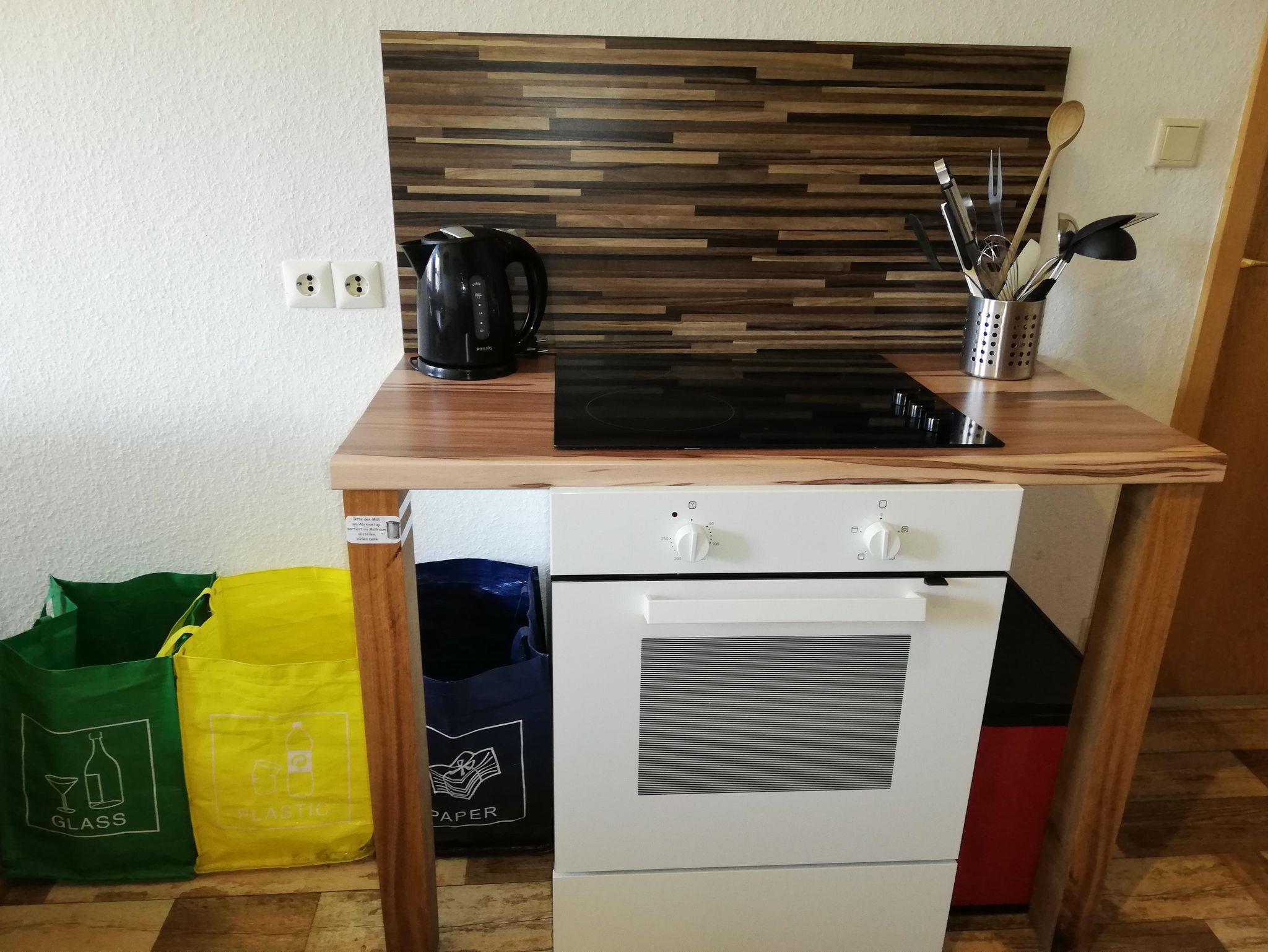 Die Wohnung ist ausgestattet mit TV (Flatscreen),Geschirrspüler, Elektroherd mit Backröhre, Mikrowelle, Kaffeeautomat, Wasserkocher, Toaster, Kühl- /Gefrierkombination, Fön und Kinderhochstuhl.