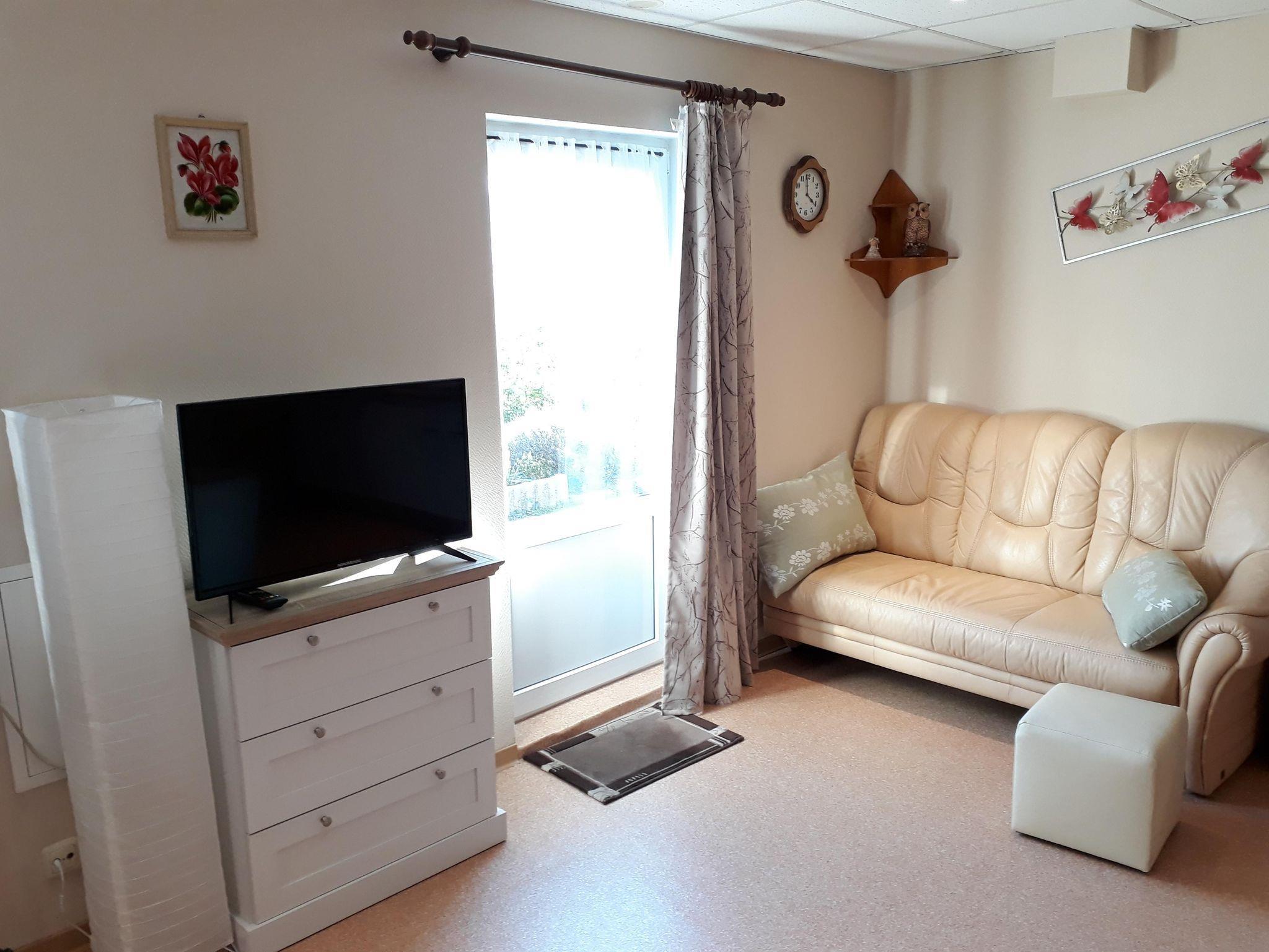 Die Wohnung ist mit einem separatem Schlafraum mit Doppelbett (160x200) und Kinderbett /Aufbettung für eine Person auf Anfrage. Im großen Wohnraum finden Sie ein Doppelbett (160x200), eine gemütliche Sitzgelegenheit, Fernseher, Essbereich und Küchenzeile. Küche und Essbereich sind komplett ausgestattet mit Kühl- und Gefrierschrank, 2 Elektro-Kochplatte, Kaffeemaschine, Wasserkocher, Mikrowelle, Toaster und komplettem Geschirr. Das Bad verfügt über eine Dusche und WC. Vom Wohnzimmer gelangen Sie von Frühling bis Herbst auf die schöne Süd-Terrasse, mit Außensitz.