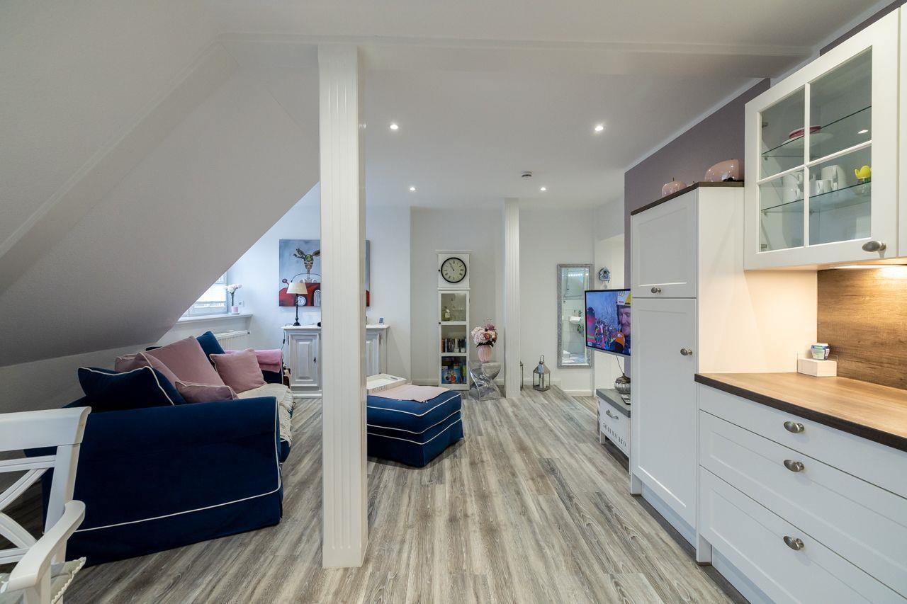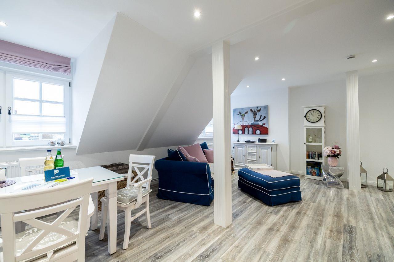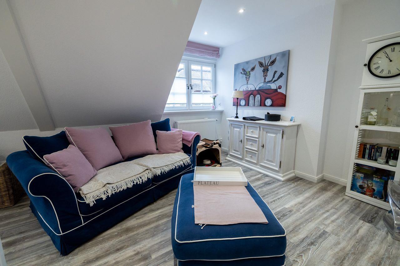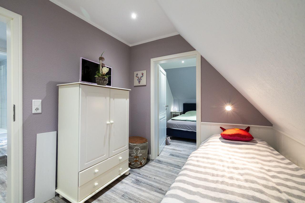 Töwerland 2 in Oevenum ist die perfekte Wahl für einen erholsamen Urlaub. Der Flur führt Sie über ein paar Stufen hinauf in die 1. Etage. Dort erwartet Sie ein großzügiger Wohn-Ess-Küchenbereich, der einen gemütlichen Ort bietet, um sich zu entspannen und zu unterhalten. Von dem Flur aus gelangen Sie zu einem Zimmer mit Einzelbett, das zu dem Schlafzimmer mit einem bequemen Doppelbett führt. Die Wohnung bietet eine große, gut ausgestattete Küche mit einem Esstisch, an dem Sie alle Mahlzeiten des Tages zusammen einnehmen können. Hinter dem Haus im Garten (die Terrasse liegt nicht an der Wohnung, sondern ist über das Grundstück erreichbar) haben Sie eine eigene, eingezäunte kleine Terrasse. Ein Strandkorb am Hundestrand in Goting (Strandkorbsaison ist von Mai bis September. Es gibt einen Strandkorb für beide Wohnungen.) rundet das Angebot ab. Die Ferienwohnung befindet sich in der 1. Etage. Im Erdgeschoss des Hauses liegt die Ferienwohnung Töwerland 1. Hier gibt es Platz für bis zu 2 Personen und einen kleinen Hund. Ein gemeinsamer Familienurlaub, bei dem sich dennoch jede Familie für sich zurückziehen kann, ist sehr gut möglich. Auf dem Grundstück befindet sich eine Garage, die Sie zum Abstellen Ihrer Fahrräder kostenfrei nutzen dürfen.