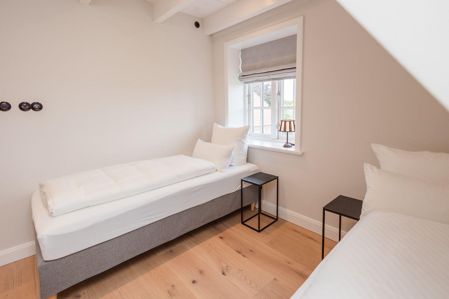 ? Ein Schlafzimmer mit zwei Einzelbetten, die bei Bedarf zu einem Doppelbett zusammengestellt werden können