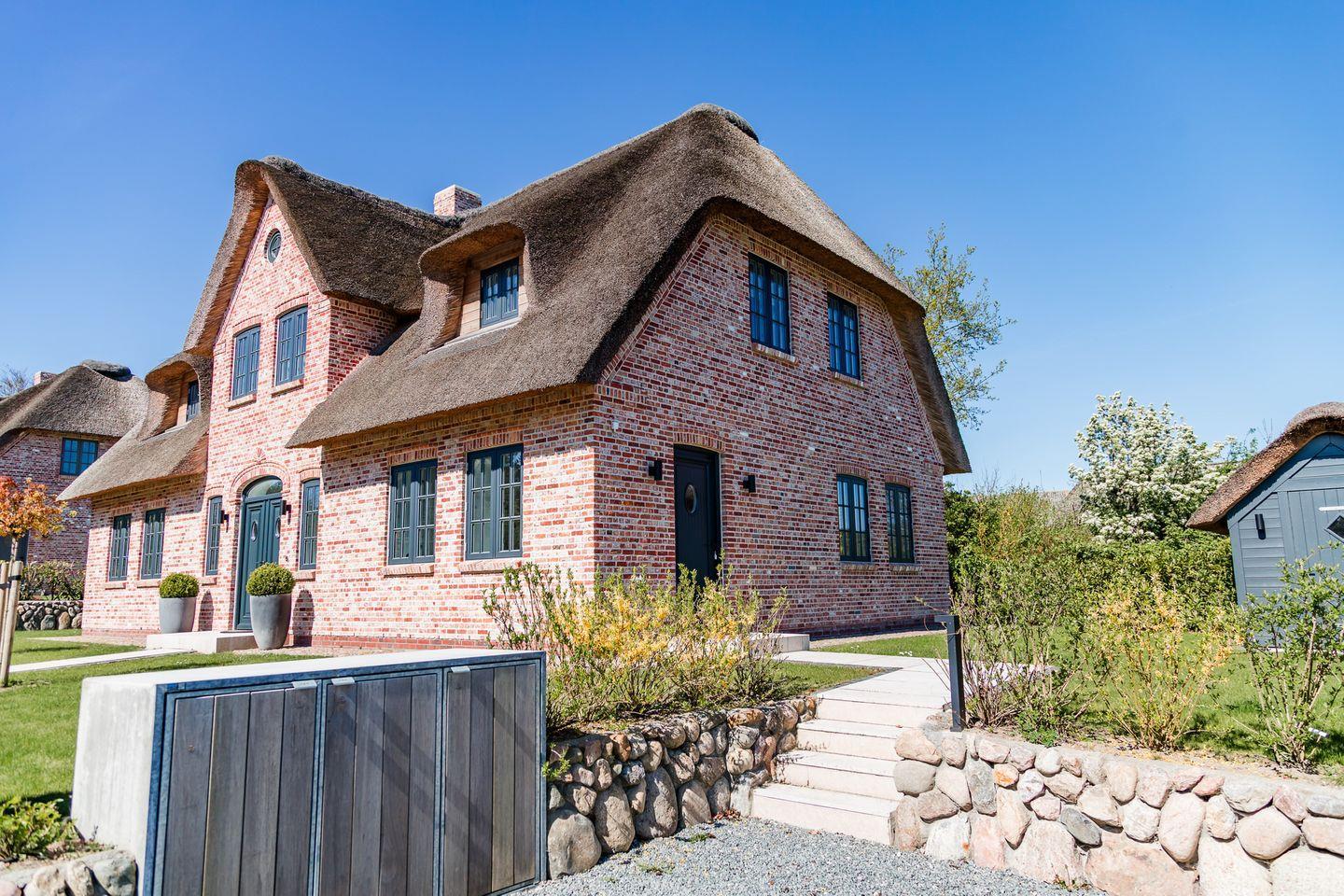 Ruhig gelegenes, modernes Ferienhaus unter Reet mit Panorama-Kamin sowie großzügiger Terrasse im eigenen Garten.