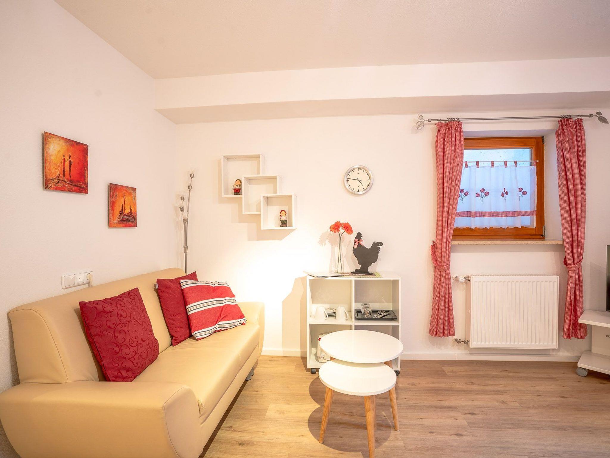 Sie verfügt ebenfalls über eine bequeme Sitzgelegenheit mit TV, WLAN sowie über ein Bad mit Dusche und WC
