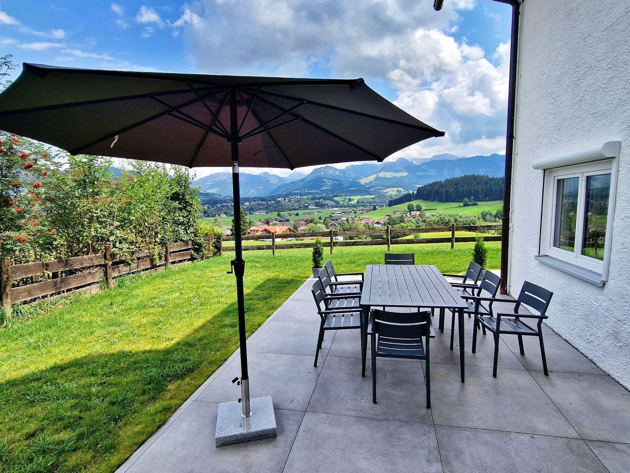 Ein weiteres Highlight sind die Terrasse und der Garten (zusammen [gt] 100 Quadratmeter groß). Hier eröffnet sich Ihnen ein traumhafter Blick auf die Allgäuer Berge. Genießen Sie Ihr Frühstück unter freiem Himmel, lassen Sie sich von der Sonne wärmen oder erleben Sie unvergessliche Sonnenuntergänge. Um die Ruhe und Harmonie in der Nachbarschaft zu respektieren, sind Junggesellenabschiede und ähnliche Gruppenfeiern untersagt.