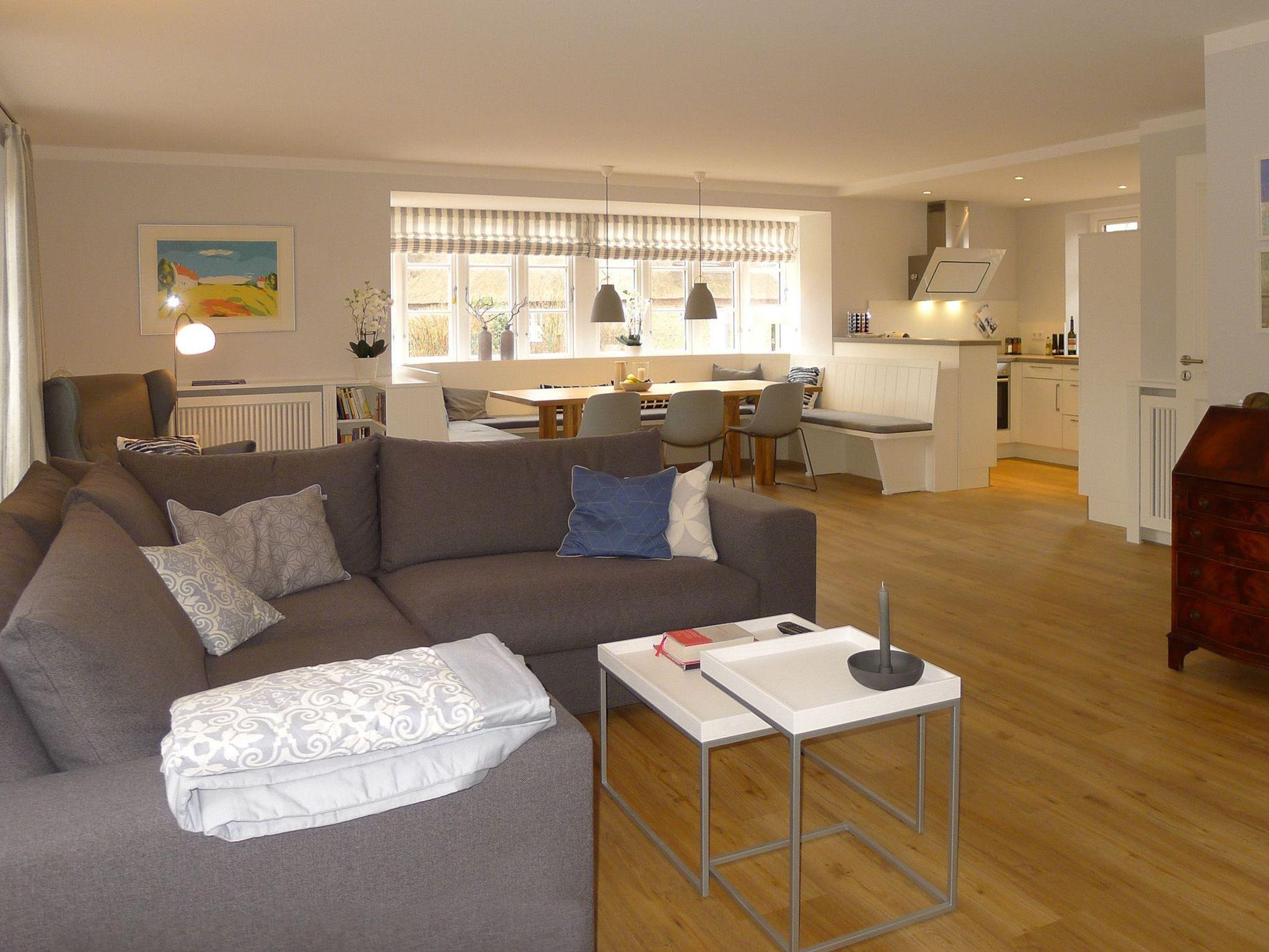 Das Dorf Oldsum, genannt das Künstlerdorf, befindet sich im westlichen Teil Föhrs. Das Haus steht in einer ruhigen Straße am Rande der Marsch, mit kurzen Wegen zum Edeka Markt mit Bäckerei, zu zwei gemütlichen Cafés und zum Dorfgasthof. Das Reetdachhaus liegt direkt am ausgeschilderten Radwanderweg. Die Haushälfte ist großzügig und hell eingerichtet. Zwei Sonnenterrassen mit südlicher und westlicher Ausrichtung laden zum Sonnenbaden und Grillen ein. Sollten Sie mit einem Elektroauto anreisen, so befindet sich nahe gelegen eine öffentliche Ladesäule.