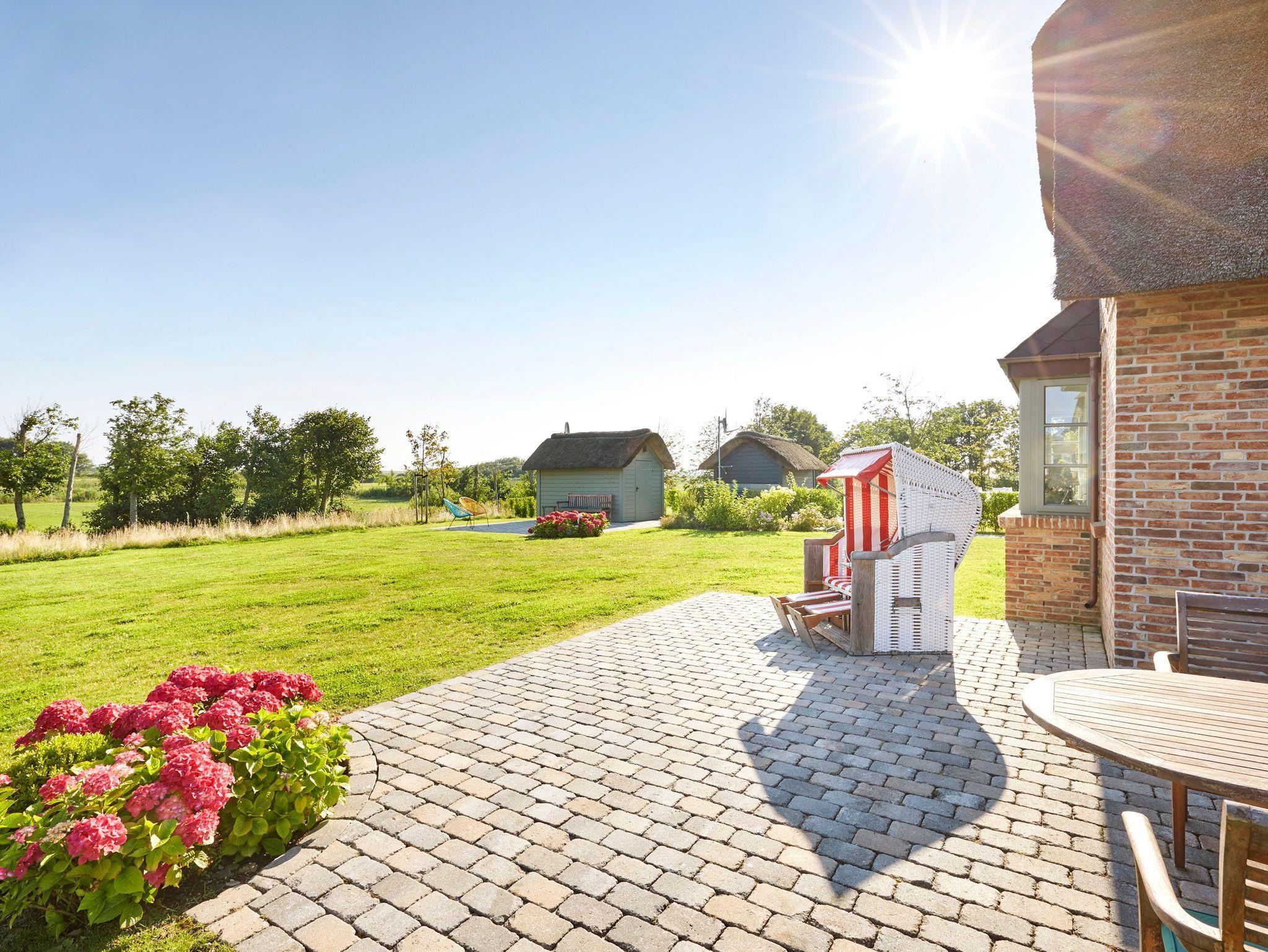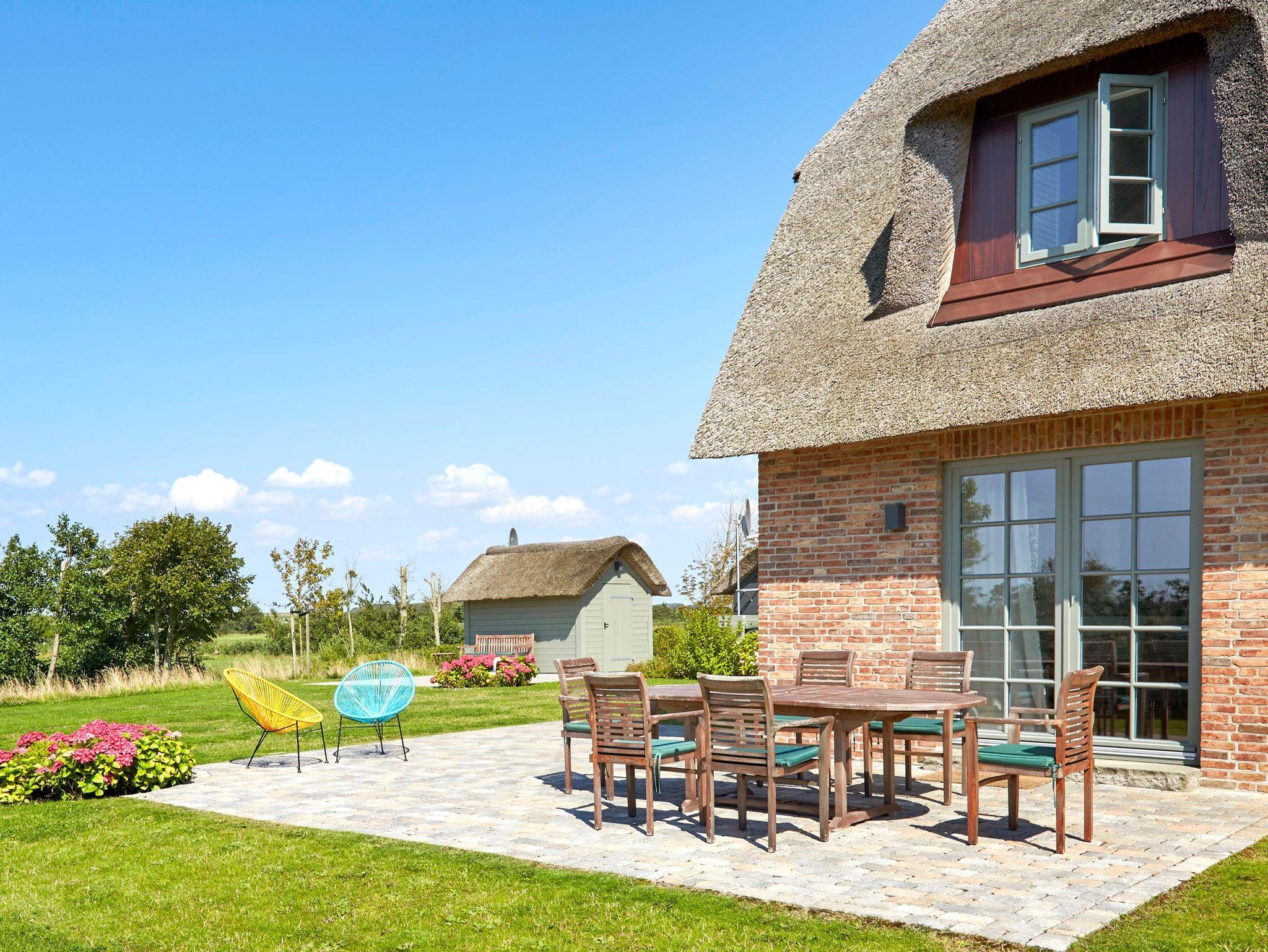 Dieses am ?westlichen Deich?[nbsp] liegende Reetdachdoppelhaus befindet sich am Ortsrand des beschaulichen und wunderschön-typischen Inseldorfes Oldsum. Mit freiem Blick in die Föhrer Marsch genießen Sie die Natur direkt schon am Morgen beim Aufstehen und von der Terrasse beim Frühstück mit der Familie. Der riesige naturnahe Garten lädt ein zum gemütlichen Lesen oder Träumen ein. Für die Kinder ist draußen wie drinnen ausreichend Platz um sich zu amüsieren und die Natur zu entdecken.