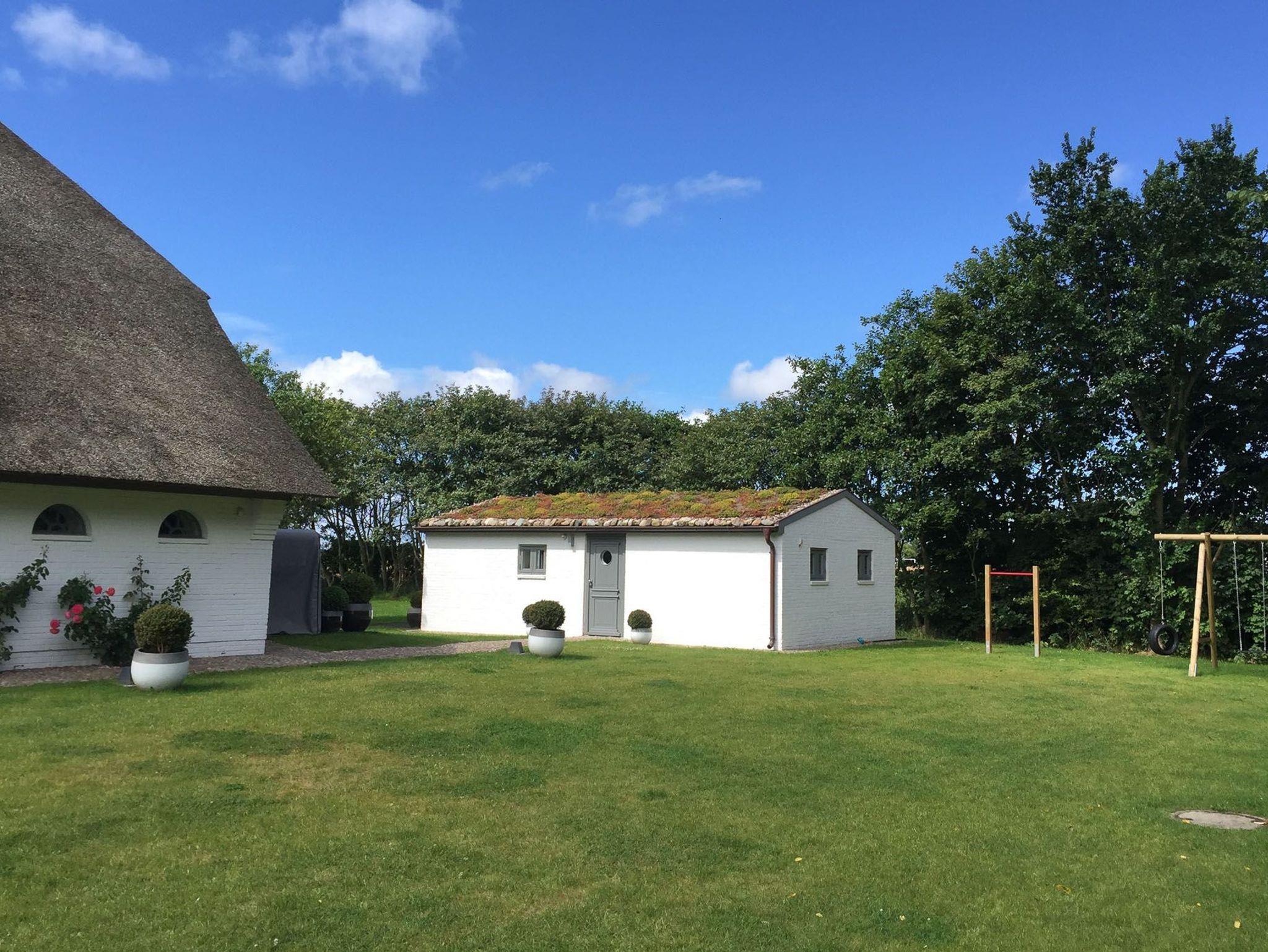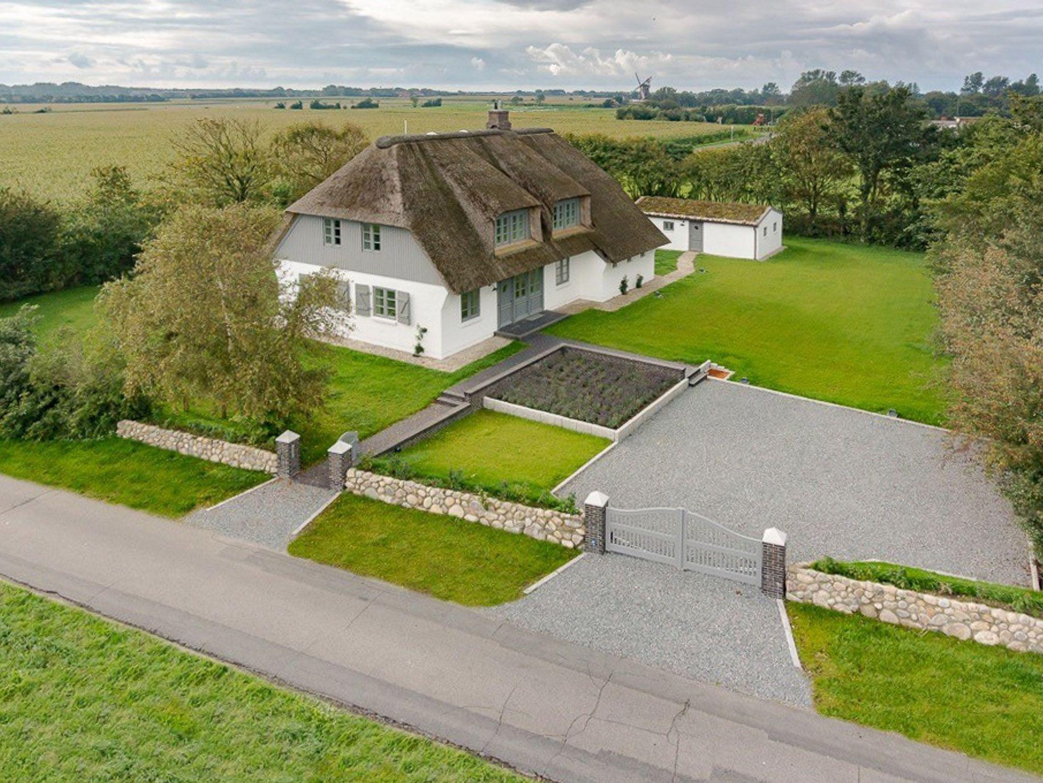 Mit viel Liebe zum Detail und in höchster Qualität ausgestattet, finden Sie in diesem Reetdachhaus Ruhe, Entspannung und Weitblick. Mitten in der Natur, umgeben von ländlichem Ambiente. Urlaub wie im eigenen Zuhause genießen - nach dieser Philosophie haben die Besitzer das Landhaus BO konzipiert und besonders anspruchsvoll ausgestattet. Ein charmantes Grundstück mit alten Obstbäumen und drei großzügigen Terrassenflächen laden zum Verweilen im Garten ein. In der kälteren Jahreszeit bieten die Sauna im separaten Sauna- und Gästehaus sowie ein Kamin im Haupthaus eine perfekte Gelegenheit für erholsame und gemütliche Stunden. Eine große und helle Bulthaup-Küche mit allen technischen Geräten lädt zum Kochen ein. Esszimmer und Wohnbereich gehen ineinander über und lassen den Blick zu auf die großen Terrassenflächen nach Süden und Westen. Die perfekten Voraussetzungen für einen fantastischen Urlaub im kleinen oder großen Kreis, denn dieses Haus bietet sogar Platz für zwei Familien. Der idyllische Ort Oldsum verfügt über einen eigenen kleinen Supermarkt und Bäcker und ist über die Grenzen Föhrs für seine Schönheit bekannt. Die Fähre sowie die weitläufigen Strände in Utersum, Nieblum und den Südstrand in Wyk erreichen Sie in nur 10 Minuten mit dem Auto