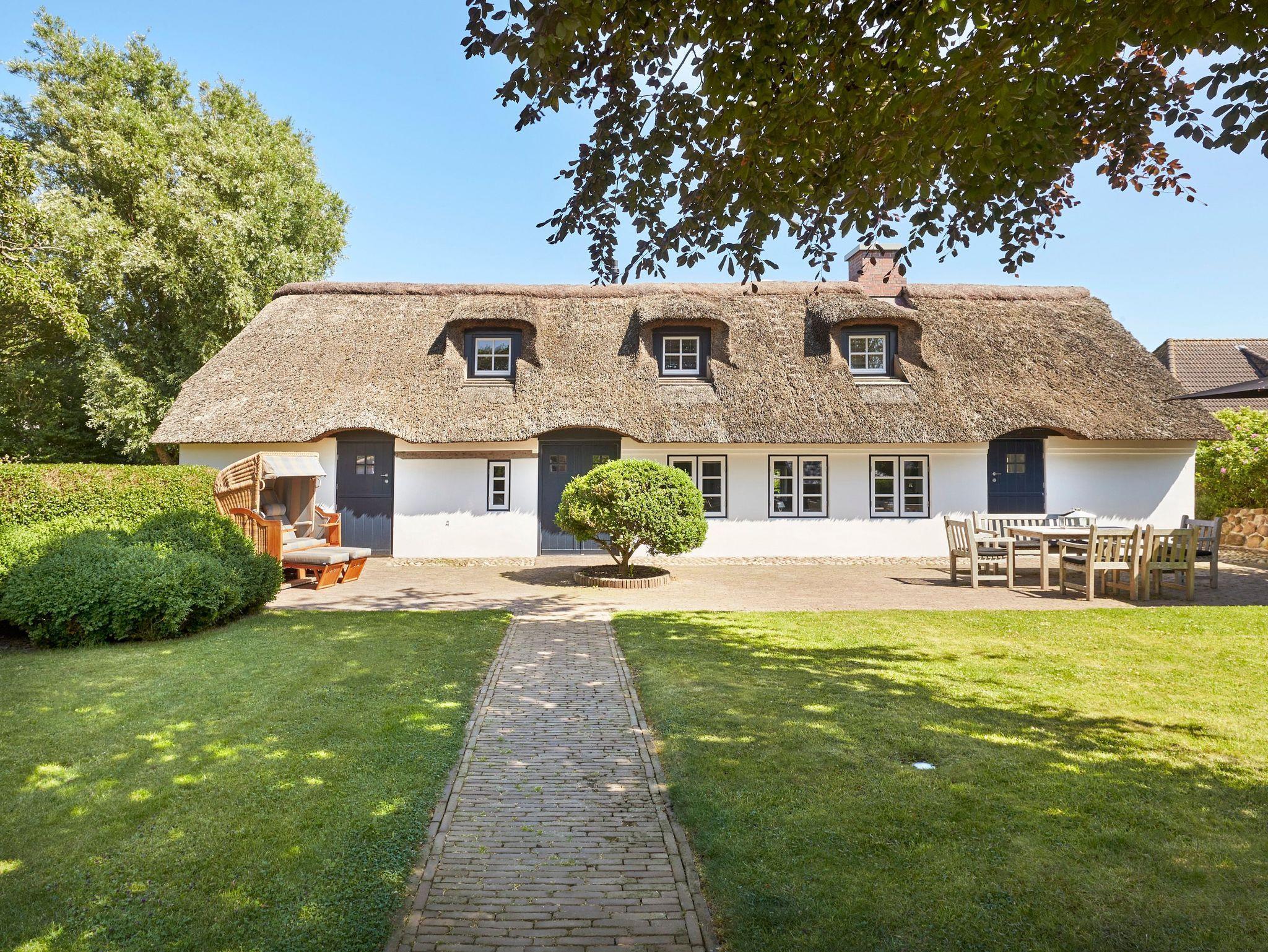 Bei unserem Haus Letj Busem handelt es sich um ein historisches Friesenhaus aus dem 18.Jahrhundert. Weiß geschlämmte Fassade, Reetdach, Holzsprossenfenster und Deckenbalken (1,85 Höhe) sind die vorrangigen Merkmale, die den typischen Charme dieses Hauses ausmachen. Das Grundstück liegt zwischen zwei schmalen Seitenwegen-ohne Durchgangsverkehr. Es bietet zur Westseite eine schöne große und blickgeschützte Gartenfläche. Das Haus liegt im Künstlerdorf Oldsum, in einem Seitenweg zur Marsch im Ortsteil Toftum. Viele Reetdachhäuser, prächtige Kapitänshäuser und liebevoll gepflegte Bauerngärten prägen das Ortsbild. Das Wahrzeichen, die Oldsumer Mühle, zeigt sich schon von Weitem. Wer Ruhe und Beschaulichkeit und die Ursprünglichkeit eines intakten Friesendorfes sucht, der wird sie hier finden.