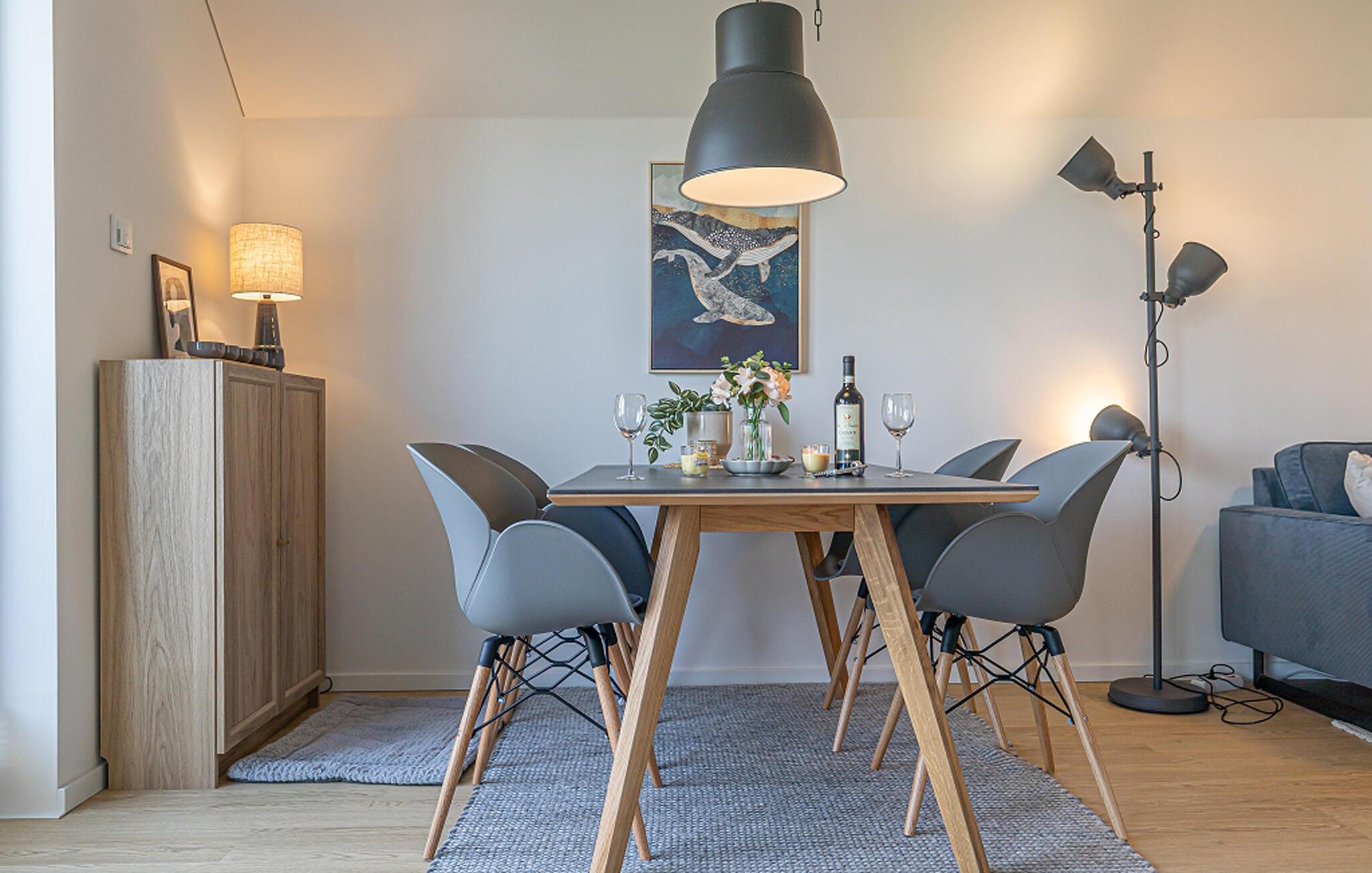 Den moderne og stilfulde lejlighed byder jer velkommen i en fremragende beliggenhed tæt på stranden og er ideel til en ferie med både afslapning ved havet og spændende oplevelser i området. Efter en aktiv dag kan I slappe af i den infrarøde sauna og nyde varmen fra den hyggeligt knitrende brændeovn.