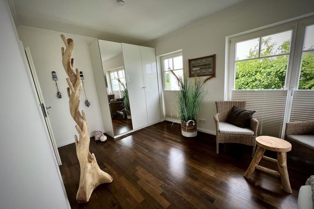Exklusiv, edel und elegant, in der ruhigen Straße „Am Albatrosplatz 7“ im Ostseeresort Olpenitz, präsentiert sich das außergewöhnliche, alleinstehende Traumferienhaus „Sliminde by Seeblick Ferien ORO". Es ist einzigartig vom Baustil und überzeugt mit traumhaften Panorama-Ansichten auf Ostseefjord Schlei. Wer nach Erholung im gehobenen Stil strebt, wird hier sein neues Lieblings-Feriendomizil finden. Hier heißt es: Ankommen und Wohlfühlen. Im Fokus steht der perfekt umgesetzte lichtdurchflutete Wohn- und Essbereich mit bodentiefen Fenstern, einer gemütlicher Echtleder Sitzlandschaft, welche zusätzlich zwei Schlafplätze bietet und dem großen Esstisch, dem Mittelpunkt der Wohnung. Die geschmackvolle Einrichtung, verleihen dem Herz der Wohnung Charme und außergewöhnlichen Wohnkomfort, wobei die Fußbodenheizung das I-Tüpfelchen aufsetzt. Der holzbefeuerte Kaminofen, mit seinem prasselnden Feuer, sorgt in diesem gemütlichen Ambiente selbst bei nordischen Schietwettertagen, für heimelige Kuschelstunden. Der 55 Zoll Smart TV mit HD+ und das Internet Radio sorgen ebenfalls für Indoor-Unterhaltung damit man den Bezug zur Realität in diesem Ambiente nicht ganz verliert. Die um das ganze Haus verlaufene Veranda bietet die Möglichkeit immer ein windgeschütztes Plätzchen zu finden und die Zeit am Meer zu genießen. Der im Anschluss an die Terrasse in Richtung Wasser umzäunte Garten mit kleinem Strandabschnitt ist das Highlight und definitiv einzigartig. Ein Strandkorb, Gartenmöbel und zwei Adirondack-Stühle mit Tisch und Fußteil stehen zur Verfügung. Der Blick fällt hier auf die atemberaubende Wasserkulisse der Schlei. Unvergessliche Sonnenuntergänge mit vorbeifahrenden Segelschiffen, Möwen in der Luft und die umgebende Ostseebrise ist ein Naturschauspiel, von dem man nicht müde wird, zuzuschauen. Das ist Urlaub mit „Seeblick Ferien ORO“ in diesem Traumhaus „Sliminde“. Sollten Sie das Los gezogen haben, Ihre Mannschaft zu verköstigen, ist das auf keinen Fall eine Niete. Die offen gestaltete Küche bietet an hochwertiger Technik und Ausstattung alles, was das Kochherz begehrt und lässt die vermeintliche Arbeit zur Freude werden. Bis ins kleinste Detail liebevoll eingerichtet. Es liegt sogar ein Kindergeschirr bereit. Die direkt an den Essbereich angrenzende Terrasse verbindet den Wohnbereich mit der Natur und verspricht gesellige Grillabende der besonderen Art mit dem Ofyr-Grill oder romantische Candle-Light Dinners bei traumhafter Kulisse und Ambiente Beleuchtung. Für zusätzlichen Komfort sorgt ein Gäste WC, sowie ein Hauswirtschaftsraum mit Waschmaschine, Kondensations-Trockner und Spüle, welcher das Erdgeschoss komplettiert. Über eine imposante Wendeltreppe gelangt man in das Obergeschoss. Zwei großzügige Schlafzimmer mit hochwertigen Boxspringbetten für vier Personen, garantieren einen wunderbar entspannten Schlaf und schöne Träume. Doch möchte man eigentlich bei diesem Ausblick schlafen...? Das Beruhigende ist: man wacht mit demselben traumhaften Ausblick wieder auf. Jedes Schlafzimmer punktet insbesondere mit dem direkten Zugang zum Balkon und dem traumhaften Ausblick auf die Schlei, sowie einen kleinen Schreibtisch für diejenigen, die im Urlaub ein wenig Arbeiten müssen. High Speed WLAN über Glasfaser und ein 43 Zoll Smart TV in jedem Schlafzimmer, ist in diesem Ferienobjekt selbstverständlich. Das voll ausgestattete Badezimmer im Obergeschoss, mit bodengleicher Dusche, bietet maritime Wellness-Momente. In der separaten finnischen Sauna lässt es sich zu jeder Jahreszeit tiefenentspannen. Vor dem Haus stehen zwei eigene Parkplätze und ein abschließbarer Fahrradschuppen mit 220V Stromanschluß zur Verfügung. Abgerundet wird dies durch die Elektroladesäule (Wallbox 11Kw mit Typ2 Stecker) für das Elektroauto. !****Strom- und Heizkosten (Gas) sind nicht im Reisepreis enthalten und werden separat nach Verbrauch abgerechnet. Im Traumferienhaus Sliminde ist maximal ein Hund gegen Gebühr erlaubt. Bettwäsche und Handtücher können in Form von Wäschepaketen (ca. 21,-EURO pro Person) direkt bei der Agentur Seeblick Ferien ORO gebucht werden, Ihre Betten wären dann bei Anreise bereits bezogen****! Eine Kaution ist bei Anreise in Höhe von 300,-EURO in BAR zu hinterlegen, diese wird sofort beim Check Out nach Abzug der Verbrauchskosten, zurückerstattet wenn keine Schäden festgestellt wurden. Das Ostseeresort Olpenitz befindet sich momentan noch in einem ständigen Wandel mit Bautätigkeit. Dies ist bei der Preisberechnung bereits berücksichtigt und stellt keinen Mangel dar.