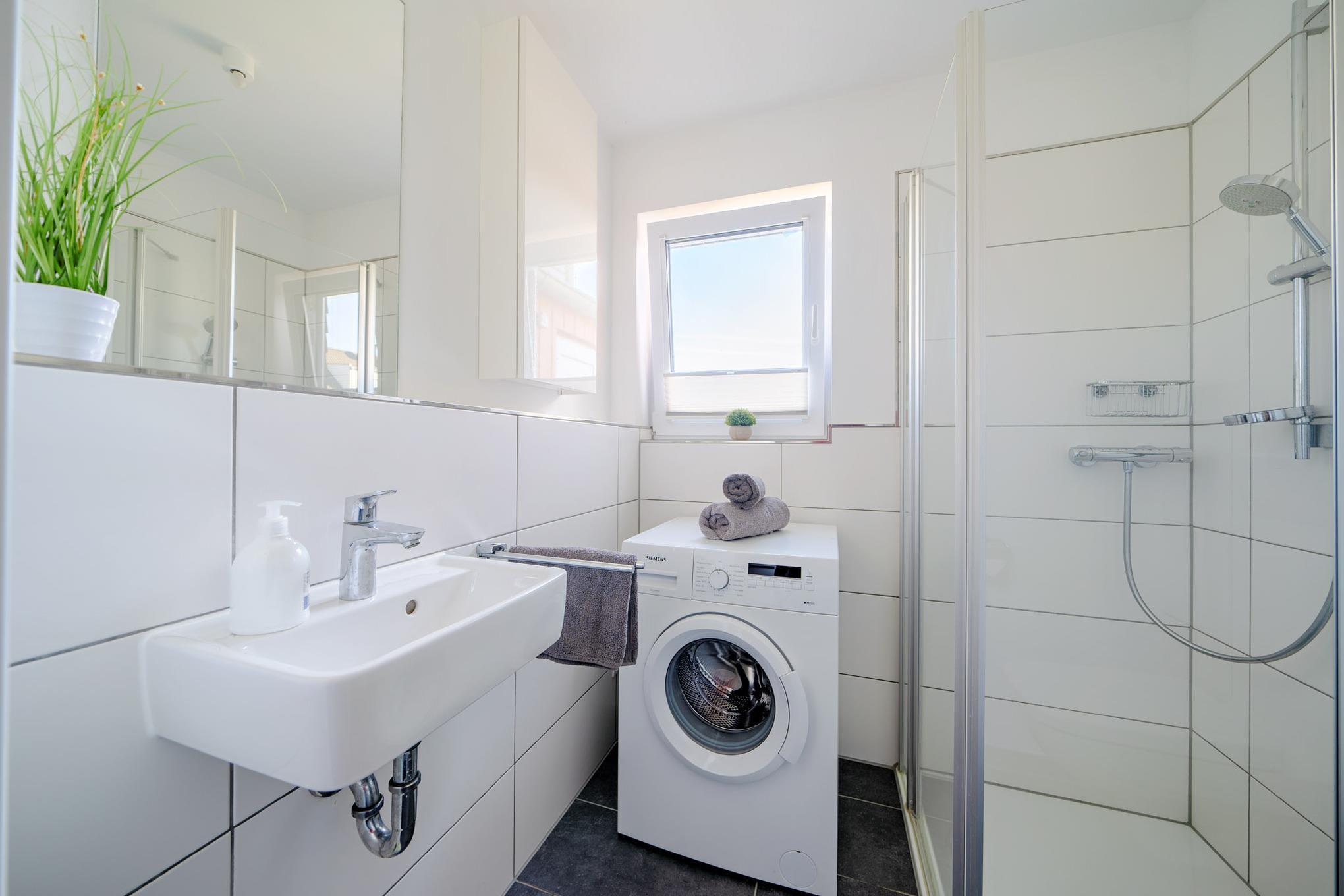 Zwei stilvolle Badezimmer, jeweils eines auf jeder Wohnebene, sorgen für höchsten Komfort. Das Highlight des ersten Obergeschosses ist die Infrarot-Sauna und der Badewanne mit Whirlpoolfunktion mit Wasserblick - hier können Sie entspannen und die Seele baumeln lassen.