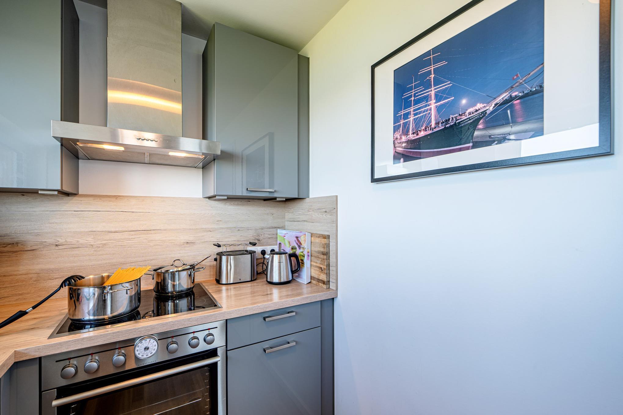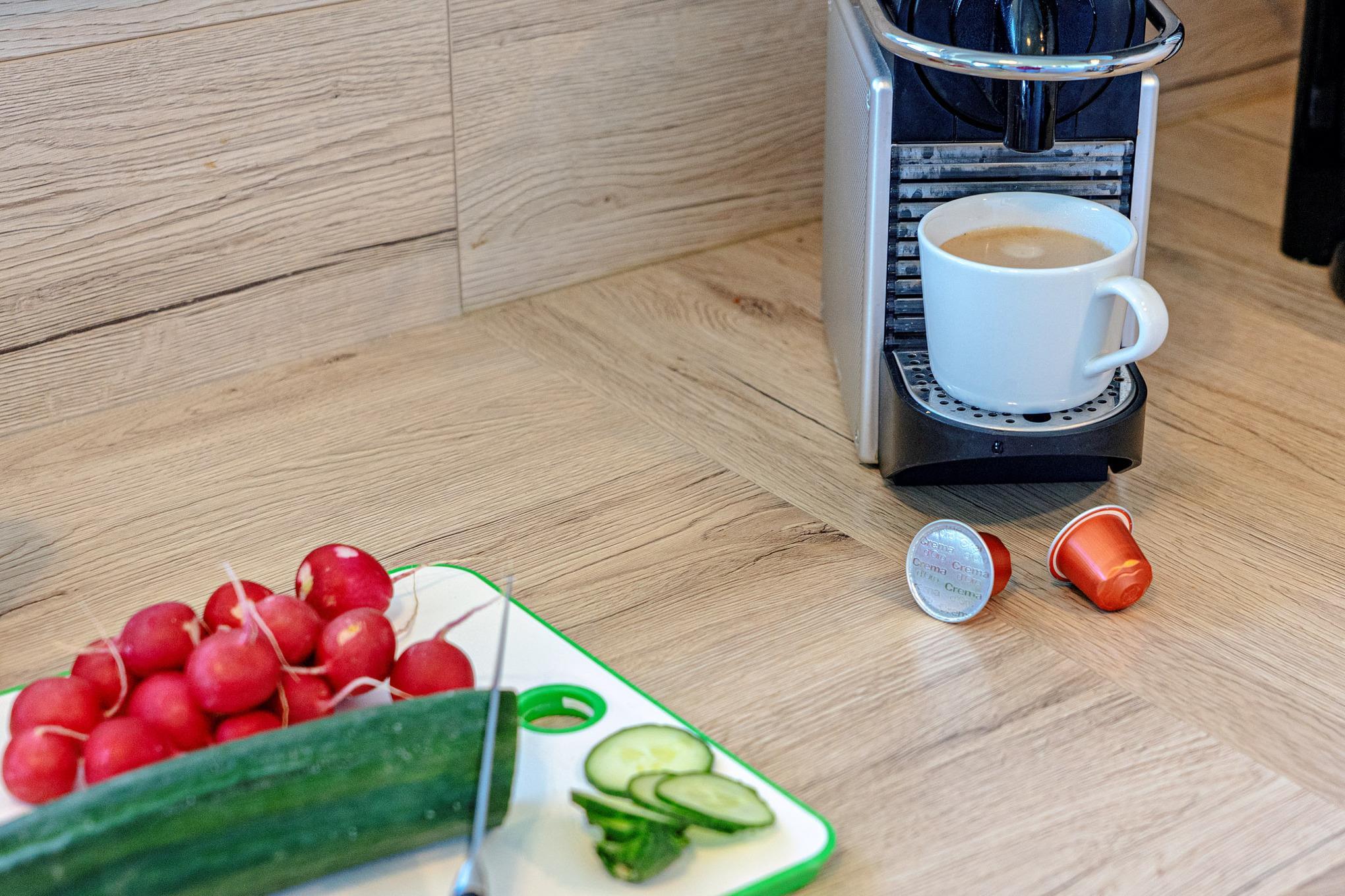 Die hochwertig ausgestattete Küche lässt keine Wünsche offen. Hier finden Sie moderne Geräte, darunter eine Nespresso Kapselmaschine, die Ihren Kaffeegenuss auf höchstem Niveau garantieren.
