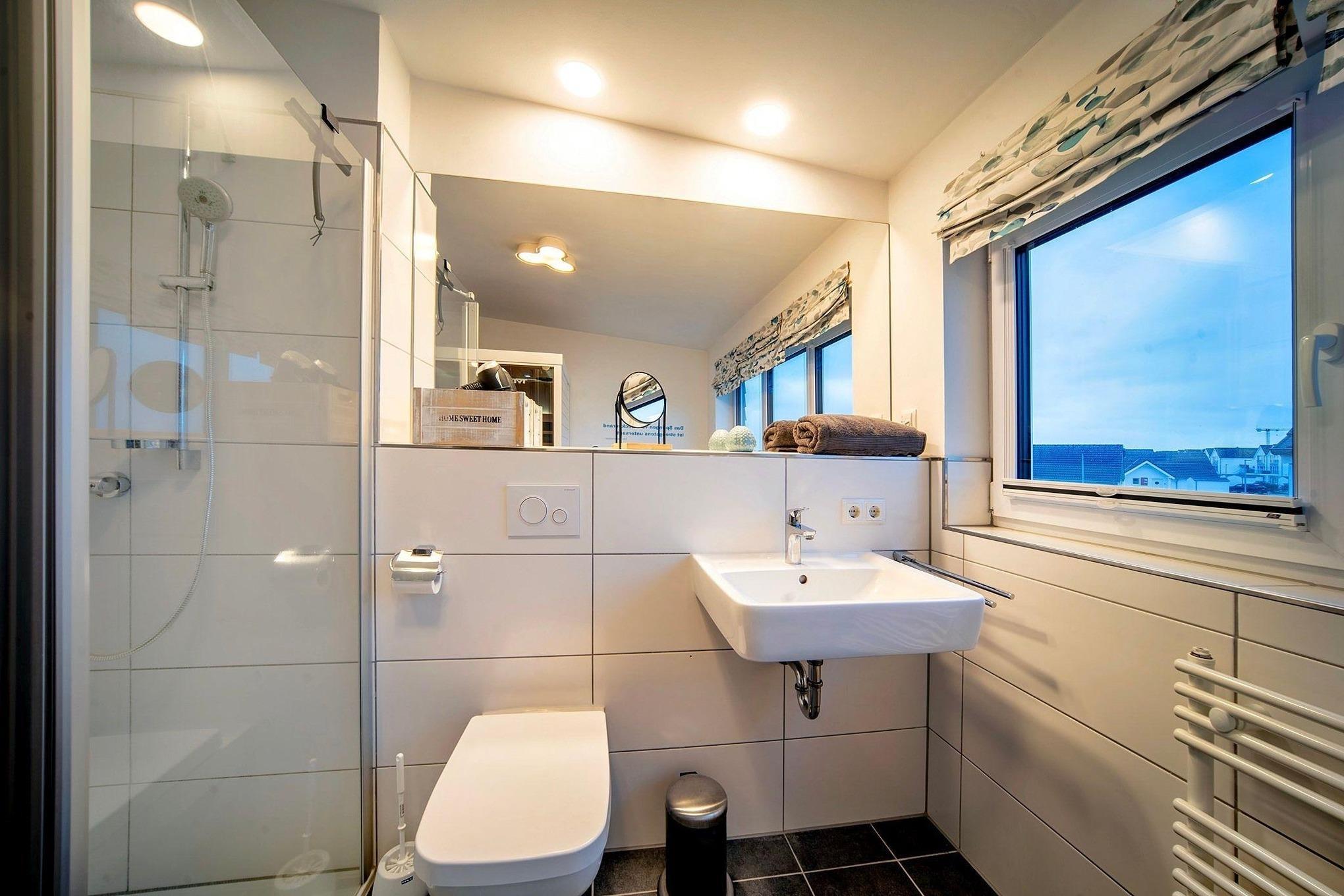 Für zusätzlichen Komfort steht Ihnen ein weiteres Duschbad im Erdgeschoss zur Verfügung.