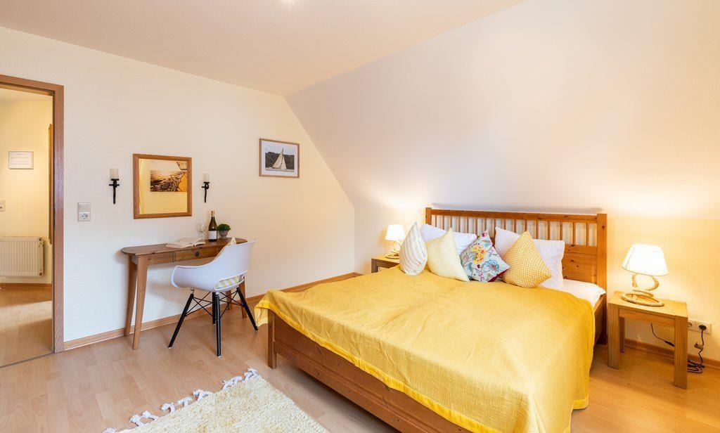 Die Ferienwohnung (ca. 70m²) umfasst einen gemütlichen Wohnraum, zwei Doppelschlafzimmer, eine großzügige Küche mit Geschirrspüler und Essecke, sowie ein großes Bad mit Wanne.