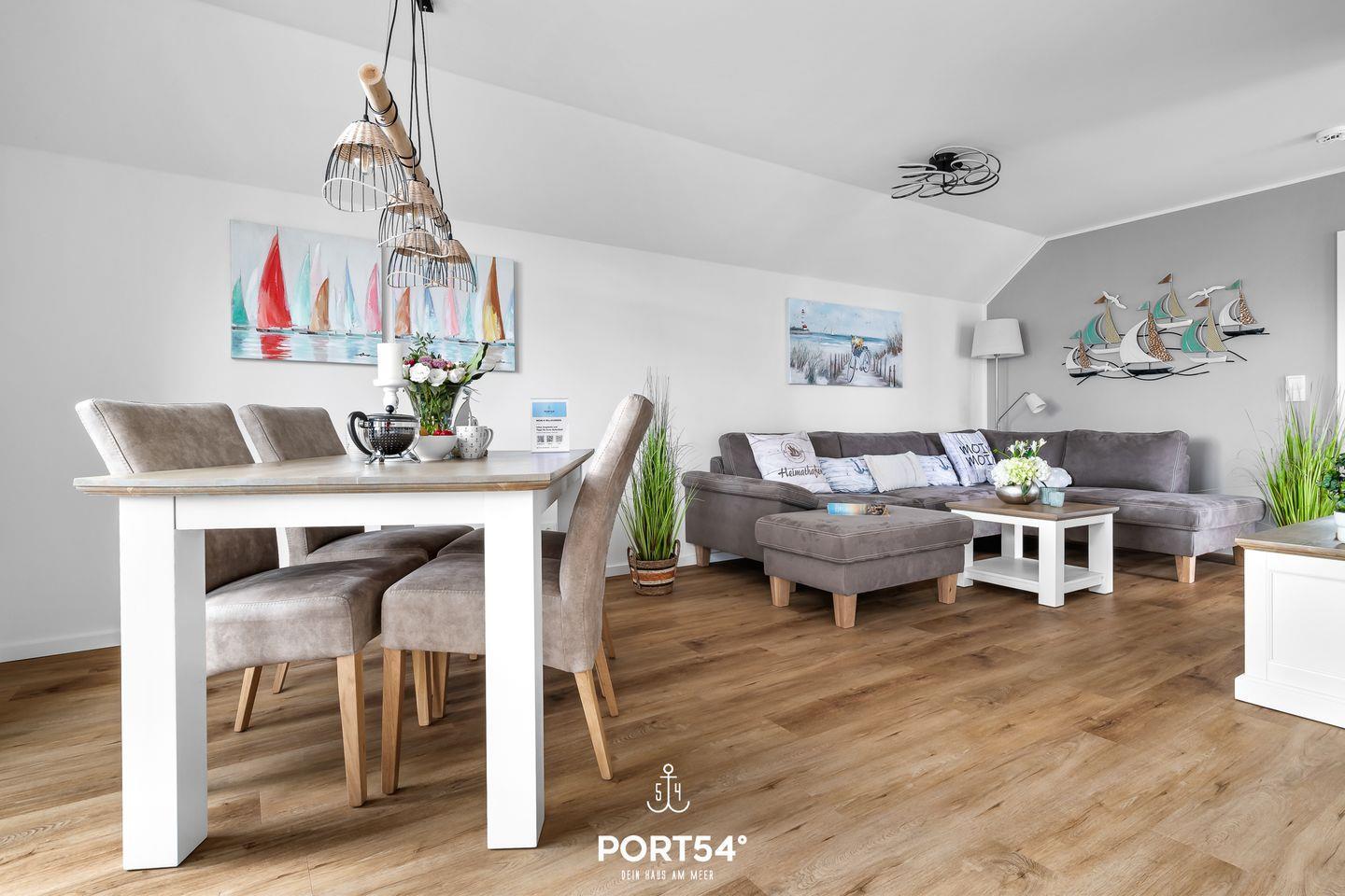 Genießen Sie einen traumhaften Urlaub in der Ferienwohnung "Strandmuschel 65" nur wenige Gehminuten von der Ostsee entfernt. Es erwartet Sie eine familienfreundlich eingerichtete Ferienwohnung mit sonnigem Balkon, in der Sie mit bis zu 5 Personen die Seele baumeln lassen können. Die „Strandmuschel 65“ empfängt Sie mit einem offenen, großzügigen und lichtdurchfluteten Wohn-Essbereich mit Kamin, der vom ersten Augenblick an Urlaubsatmosphäre versprüht. In der integrierten und komfortabel ausgestatteten Einbauküche können Sie nach Herzenslust kochen und backen, Hobbyköche kommen hier voll auf ihre Kosten. Ein absolutes Highlight der Wohnung ist der große sonnige Balkon. Hier können Sie auf einer der bequemen Sonnenliegen entspannen oder nach einem erlebnisreichen Tag einen geselligen Grillabend verbringen, für den ein Weber-Elektrogrill bereit steht. Oder Sie genießen vom überdachten zweiten Balkon der Wohnung am Morgen bei einer Tasse Kaffee die ersten Sonnenstrahlen und in der Ferne die Ostsee. Zur Erkundung der Umgebung oder für den schnellen Weg zum Bäcker stehen Ihnen zwei Fahrräder zur Verfügung, die sich in dem zur Ferienwohnung gehörenden abschließbaren Fahrradschuppen befinden. Hier können Sie gern auch mitgebrachte Fahrräder abstellen. Auch unsere kleinen Gäste kommen in der Ferienwohnung voll auf ihre Kosten: ob Gesellschaftsspiele mit der Familie, kleine Bauwerke mit Kappla-Steinen oder Drachensteigen an der Ostsee - für jeden ist etwas dabei. Selbstverständlich stehen Ihnen auch ein Reisebett und ein Hochstuhl zur Verfügung, außerdem sind ein Tritthocker und ein Toilettensitz vorhanden. Und sollte das Wetter einmal nicht mitspielen, können Sie es sich auf der bequemen Wohnlandschaft vor dem Kamin gemütlich machen. Für das Unterhaltungsprogramm stehen Ihnen im Wohnzimmer und in beiden Schlafzimmern je ein Flachbild-TV mit verschiedenen Streaming-Zugängen bereit. Nach einem erlebnisreichen Urlaubstag sorgt das Bad mit einer bodengleichen Dusche und einer Infrarot-Sauna für Wohlfühlmomente. Für die nächtliche Erholung stehen zwei Schlafzimmer bereit, die mit bequemen Boxspringbetten ausgestattet sind (Schlafzimmer 1: Doppelbett 180 x 200 cm; Schlafzimmer 2: Doppelbett 160 x 200 cm und Einzelbett 90 x 200 cm). Für einen erholsamen Schlaf sorgen außerdem Insektenschutzgitter und Verdunklungsmöglichkeiten. Direkt vor der Unterkunft steht Ihnen ein eigener Stellplatz mit einer E-Ladesäule zur Verfügung.