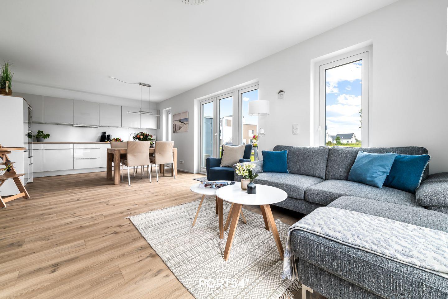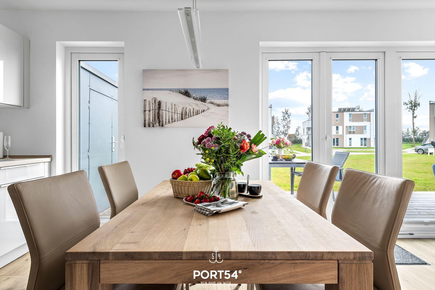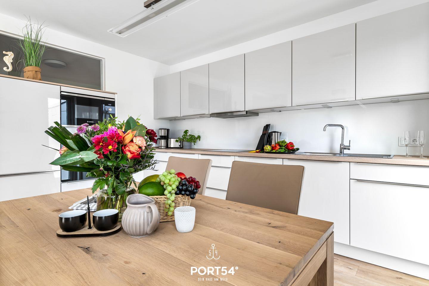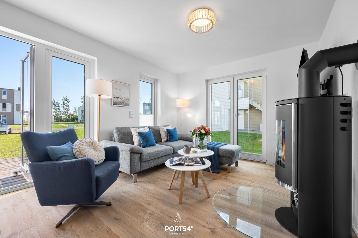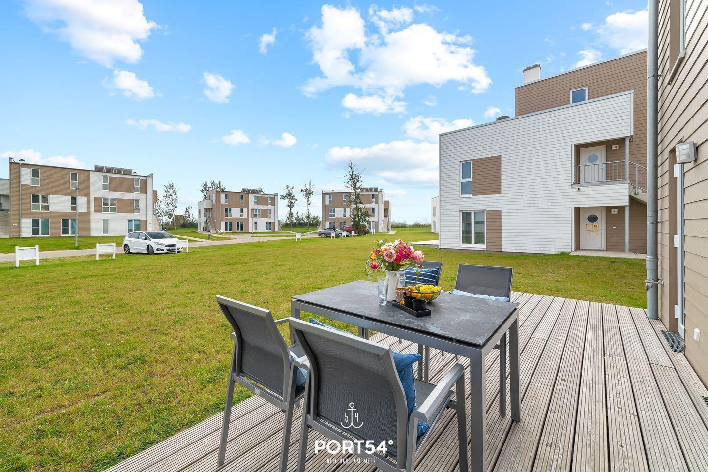 Urlaubsfeeling pur – Moderne, barrierearme Ferienwohnung in Olpenitz für bis zu 4 Personen. "Tortuga" bietet mit dem lichtdurchfluteten Wohnzimmer und mit angrenzender offener Küche, den zwei Schlafzimmern und einem Badezimmer alles was man für einen Ostseeurlaub braucht. Im Wohnzimmer lädt ein gemütliches Sofa, sowie ein Flachbild-TV zu geselligen Abenden ein, während der Kaminofen Ihnen eine angenehme Wärme spendet. Die voll ausgestattete Küche lässt gemütliche, gemeinsame Kochabende im Urlaub zu einem Erlebnis werden. Das eine Schlafzimmer bietet ein gemütliches Doppelbett (180x200cm) sowie Verdunklungsmöglichkeiten für erholsame Nächte. Das andere Schlafzimmer verfügt über zwei Einzelbetten (je 90x200cm) mit Verdunklungsmöglichkeit und Insektenschutzgittern. Für die kleinsten Gäste stehen ein Hochstuhl und ein Reisebettchen zur Verfügung. Das Badezimmer verfügt über eine ebenerdige Dusche und einen Föhn. Zudem gibt es eine Infrarot-Sauna, um so richtig entspannen zu können. Genießen Sie einen geselligen Grillabend mit der ganzen Familie. Die gemütlichen Gartenmöbel und ein Weber Elektrogrill laden zu schönen Sonnenstunden auf der Terrasse ein.
