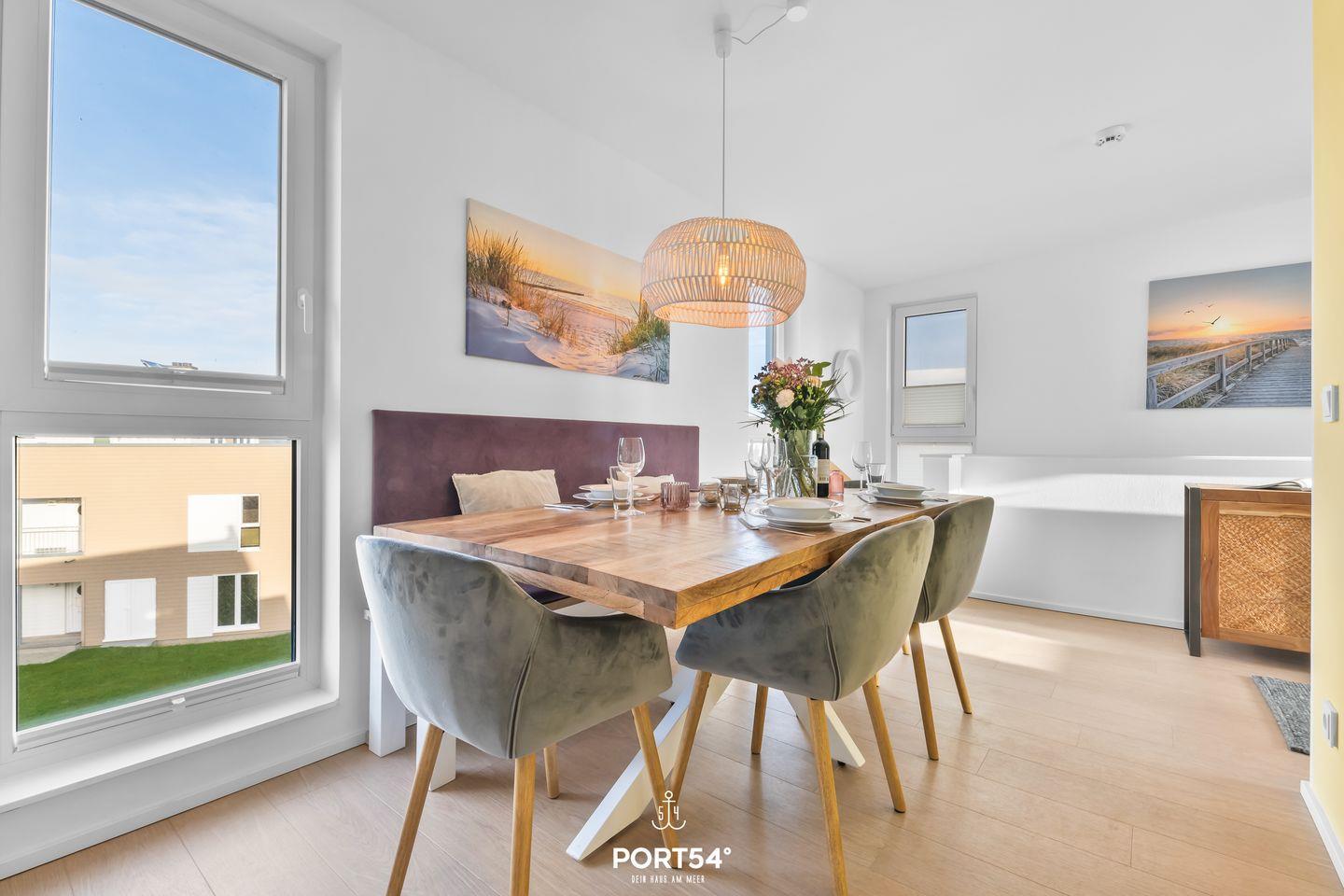 Ein besonderer Höhepunkt der Wohnung ist die große Terrasse, die nicht nur einen herrlichen, unverbauten Blick auf das angrenzende Naturschutzgebiet bietet, sondern auch mit hochwertigen Gartenmöbeln ausgestattet ist. Hier können Sie sonnige Tage im Freien verbringen und die frische Ostseebrise genießen. Der Ferienwohnung ist zudem ein eigener Privatparkplatz zugeordnet.