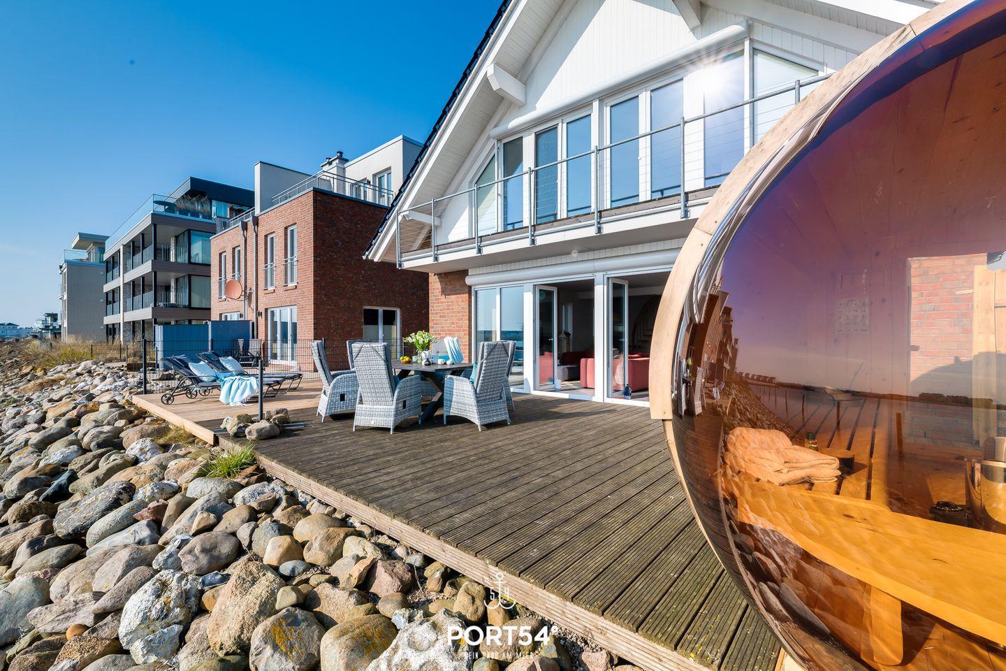 Villa Atlantis - 1. Reihe am Wasser, Fasssauna, XXL-Dusche, Terrasse, Balkon
