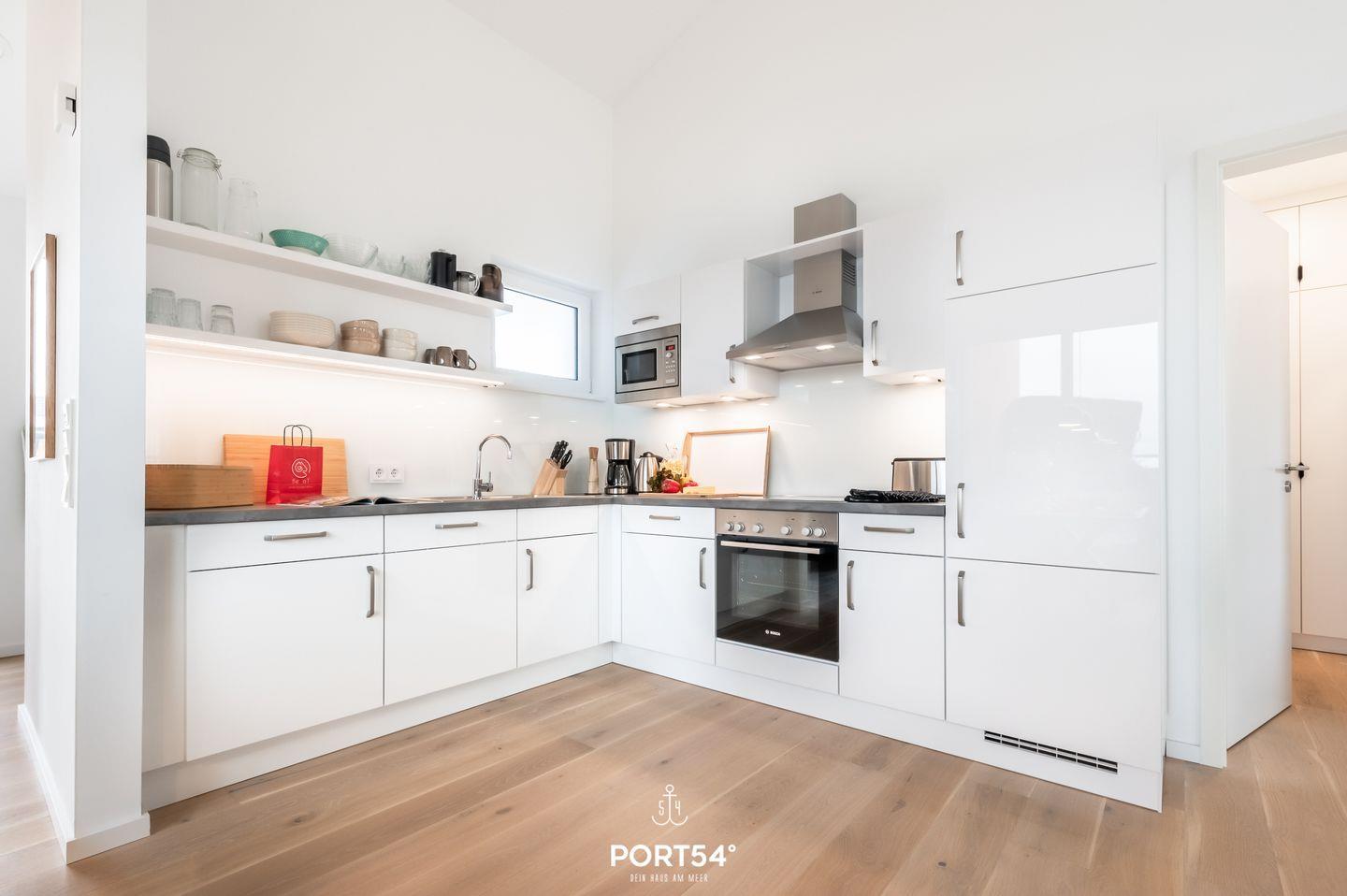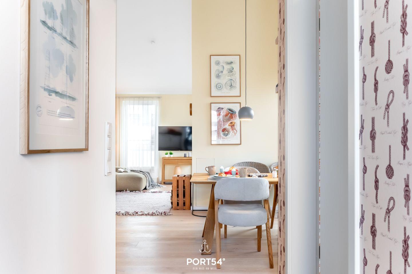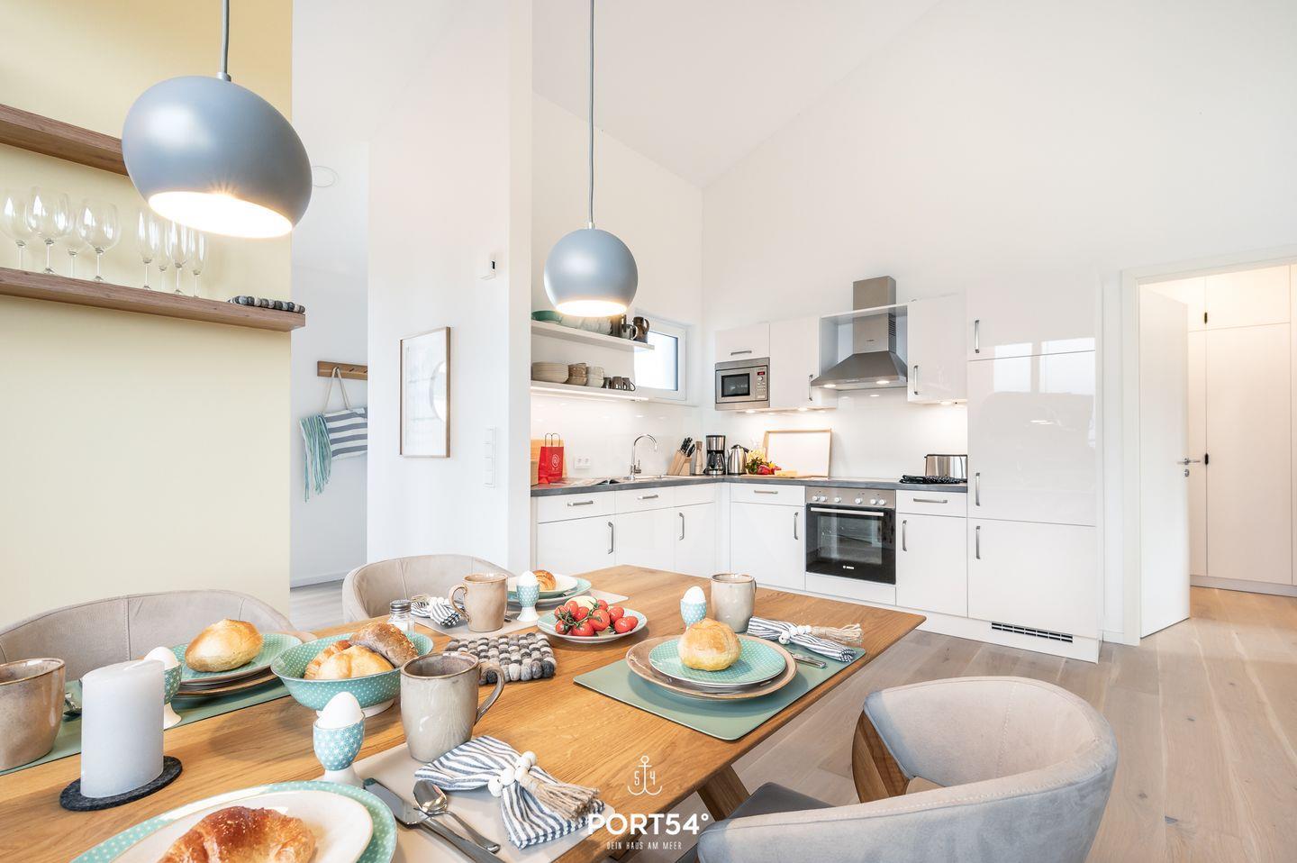 Herzlich willkommen im "Penthouse Kapitänskajüte"! Im Penthouse bietet die luxuriöse Ausstattung Platz für bis zu 4 Personen und die Möglichkeit einen unvergesslichen Ostseeurlaub zu erleben! Dank der sehr hohen Decken erwartet Sie hier ein ganz besonders Raumgefühl. Vom Wohn- und Essbereich, sowie von der Dachterrasse im 4. Obergeschoss aus eröffnet sich Ihnen ein atemberaubender und weitläufiger Blick auf die Schlei und die malerische Marina des Resorts. Hier können Sie den frischen Seewind um die Nase wehen lassen und das maritime Flair in vollen Zügen genießen. Die Einrichtung des Penthouses verspricht nicht nur Erholung, sondern auch Wohlfühlatmosphäre. Lassen Sie sich auf dem Sofa nieder und erleben Sie gemütliche Abende vor dem Kamin, während der Flachbild-TV mit Magenta TV für beste Unterhaltung sorgt. Die voll ausgestattete Küche mit offenem Essbereich lädt zu geselligen Kochabenden ein und lässt keine Wünsche offen. Die Schlafzimmer sind mit hochwertigen Boxspringbetten (180x200cm) ausgestattet und bieten Verdunkelungsmöglichkeiten für eine angenehme Nachtruhe. Selbstverständlich steht auch hier ein Flachbild-TV für Ihre Unterhaltung bereit. Das moderne Badezimmer beeindruckt mit einer geräumigen ebenerdigen Dusche und ist mit einem Handtuchtrockner, einem Fön und einem Kosmetikspiegel ausgestattet. Der möblierte Balkon mit dem Strandkorb wird schnell zu Ihrem Lieblingsplatz, auf dem Sie die Sonnenuntergänge bewundern und den herrlichen Ausblick genießen können. Hier befindet sich ein Elektro-Grill, um gemütliche Grillabende an der frischen Ostseeluft zu veranstalten. Das Apartmentgebäude ist mit einem Aufzug ausgestattet, der Ihnen einen bequemen Zugang zu Ihrem Refugium ermöglicht. Ein kostenfreier Parkplatz befindet sich direkt vor der Unterkunft, und für Ihre Fahrräder steht ein abschließbarer Schuppen zur sicheren Unterstellung bereit.