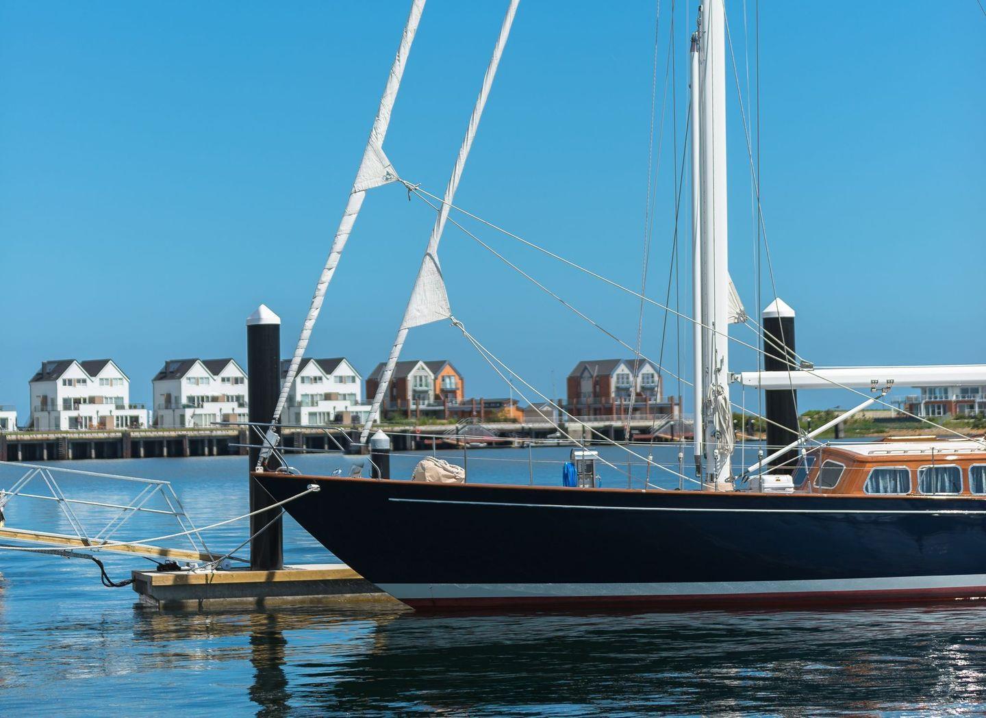 Erleben Sie einen Urlaub, der seinesgleichen sucht, mit atemberaubenden Ausblicken auf die Ostsee und die Hafeneinfahrt, wo Segelyachten vorbeiziehen. Große, bodentiefe Fenster im Wohn-Essbereich fangen die Schönheit der Umgebung ein und sorgen für lichtdurchflutete Räume.