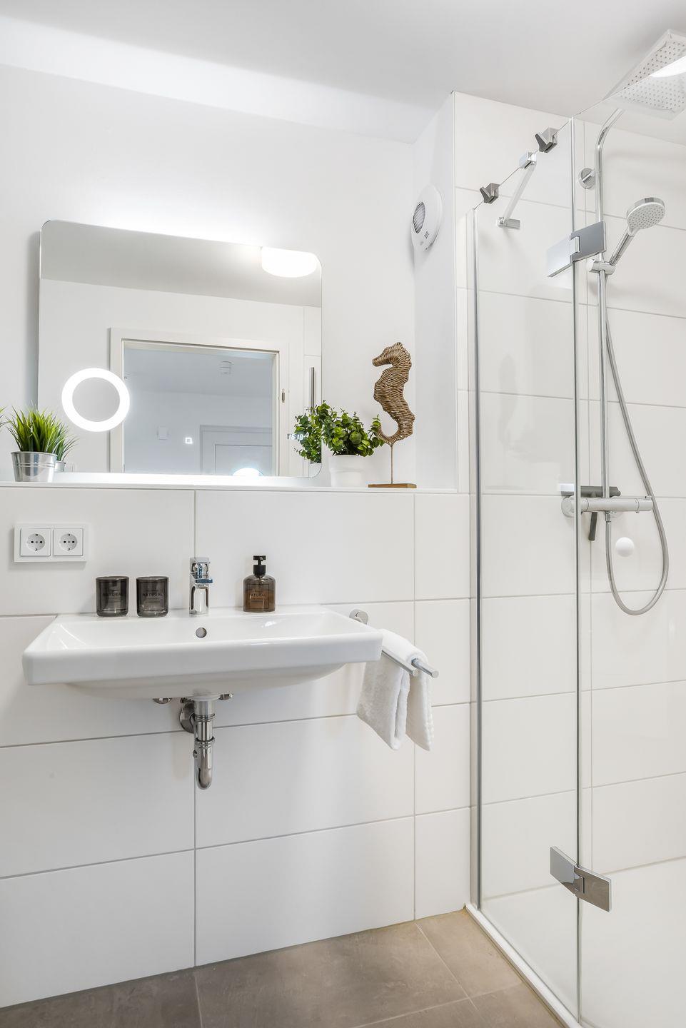 Das Highlight: Ein Badezimmer mit großer, bodengleicher Regendusche und eigener Infrarotkabine. Das ist Luxus und Entspannung auf höchstem Niveau – zu jeder Jahreszeit!