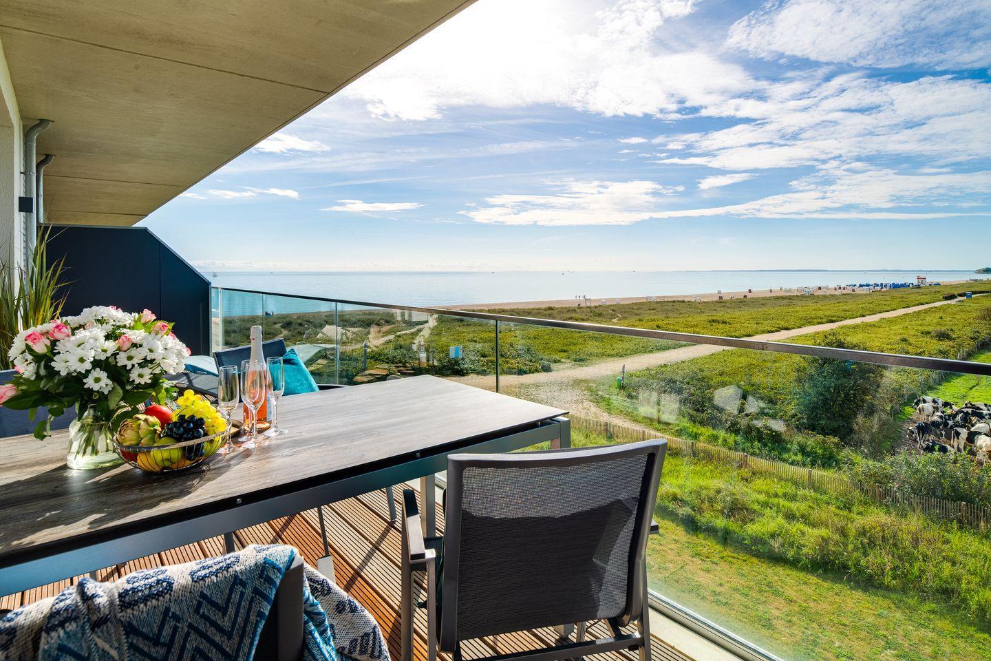 "BeachWaveThree": Ferienwohnung direkt am Strand mit Sauna, Balkon & Ostseeblick