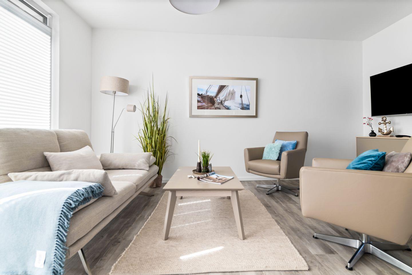 Das Apartment "BeachViewThree" bietet zwei Schlafzimmer, ausgestattet mit hochwertigen Boxspringbetten für einen erholsamen Schlaf. Entspannen Sie sich in der finnischen Sauna oder genießen Sie ein Bad in der großzügigen Wanne.
