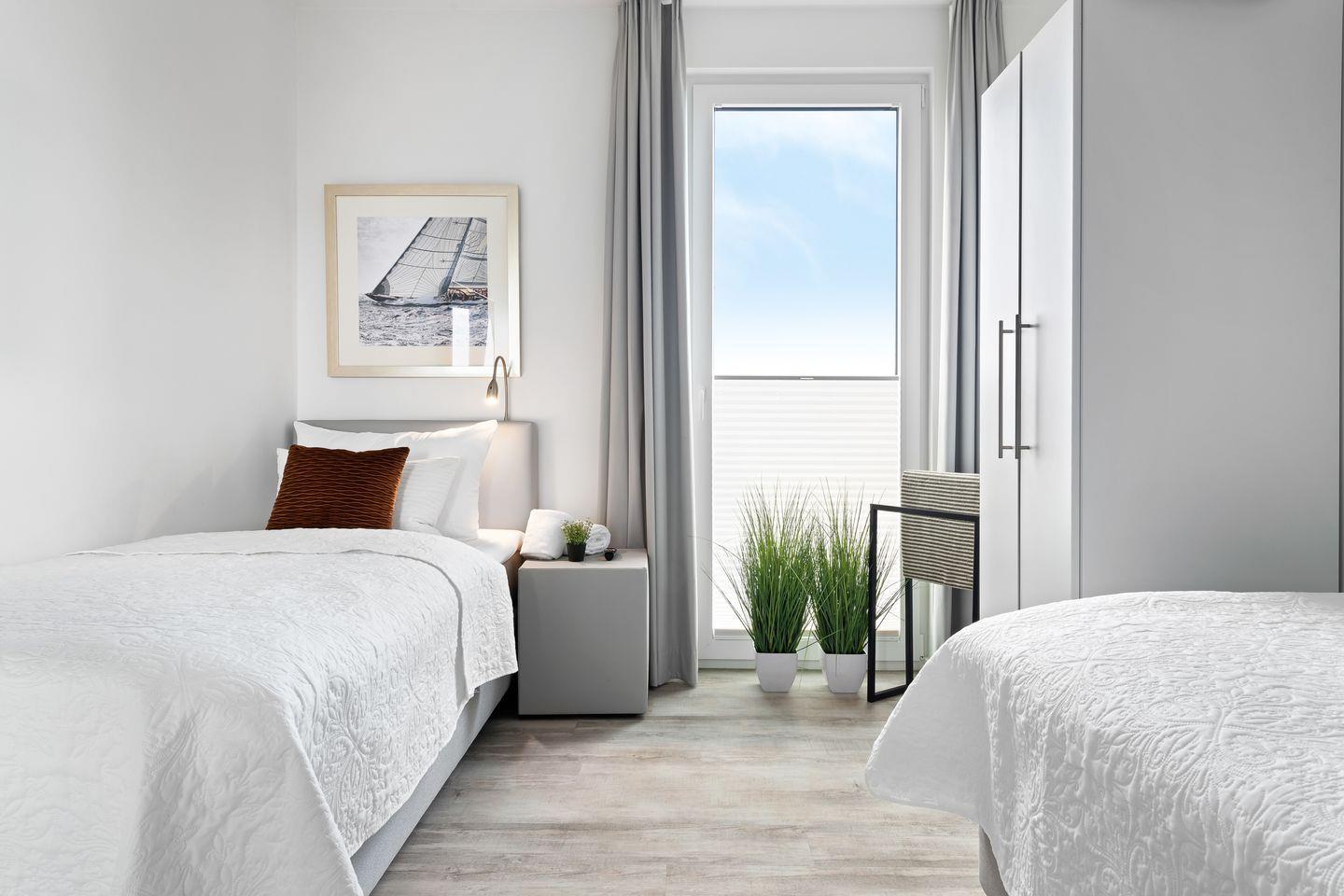 Das Apartment "BeachViewFour" bietet zwei Schlafzimmer, ausgestattet mit hochwertigen Boxspringbetten für einen erholsamen Schlaf. Entspannen Sie sich in der finnischen Sauna oder genießen Sie ein Bad in der großzügigen Wanne.