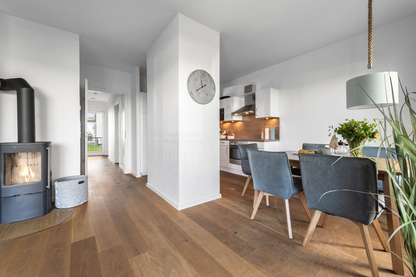 Freuen Sie sich auf eine voll ausgestattete Küche, die Ihnen mit modernen Geräten wie einem Herd, Kühlschrank, Spülmaschine und natürlich einem Wasserkocher sowie einem Toaster zur Verfügung steht. Essen wird zum Erlebnis – entweder am Esstisch oder im Freien auf der Terrasse. Für gemütliche Abende gibt es ein modernes Wohnzimmer mit einem Kaminofen, der auch an kühleren Tagen für wohlige Wärme sorgt. Genießen Sie Ihre Lieblingssendungen auf einem der zwei TVs oder entspannen Sie einfach bei einem Hörbuch oder Musik aus dem Radio.