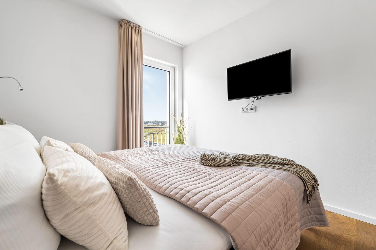 Die zwei Schlafzimmer verfügen über bequeme Boxspringbetten und hochwertige Kleiderschränke, in einem der beiden befindet sich ebenfalls ein Smart-TV.