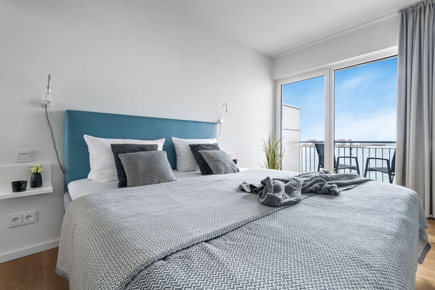 Die drei Schlafzimmer bieten Platz für sechs Personen und verfügen alle über hochwertige Boxspringbetten und bodentiefe Fenster, die sich durch Gardinen abdunkeln lassen. Eines der drei Schlafzimmer hält außerdem einen Flatscreen für Entertainment bereit.