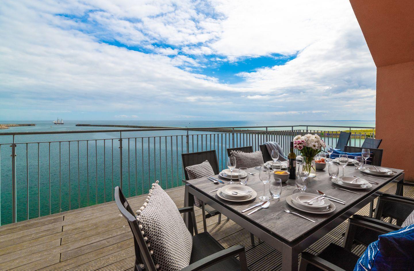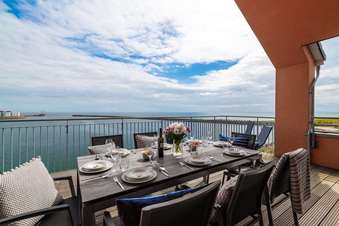 Die große Terrasse ist das absolute Herzstück der Wohnung "Ocean King", ob entspannte Grillabende, der morgendliche Kaffee oder ein Sonnenbad; hier ist für jeden etwas dabei!